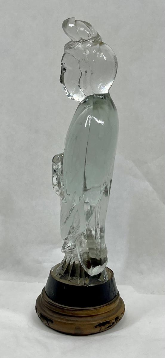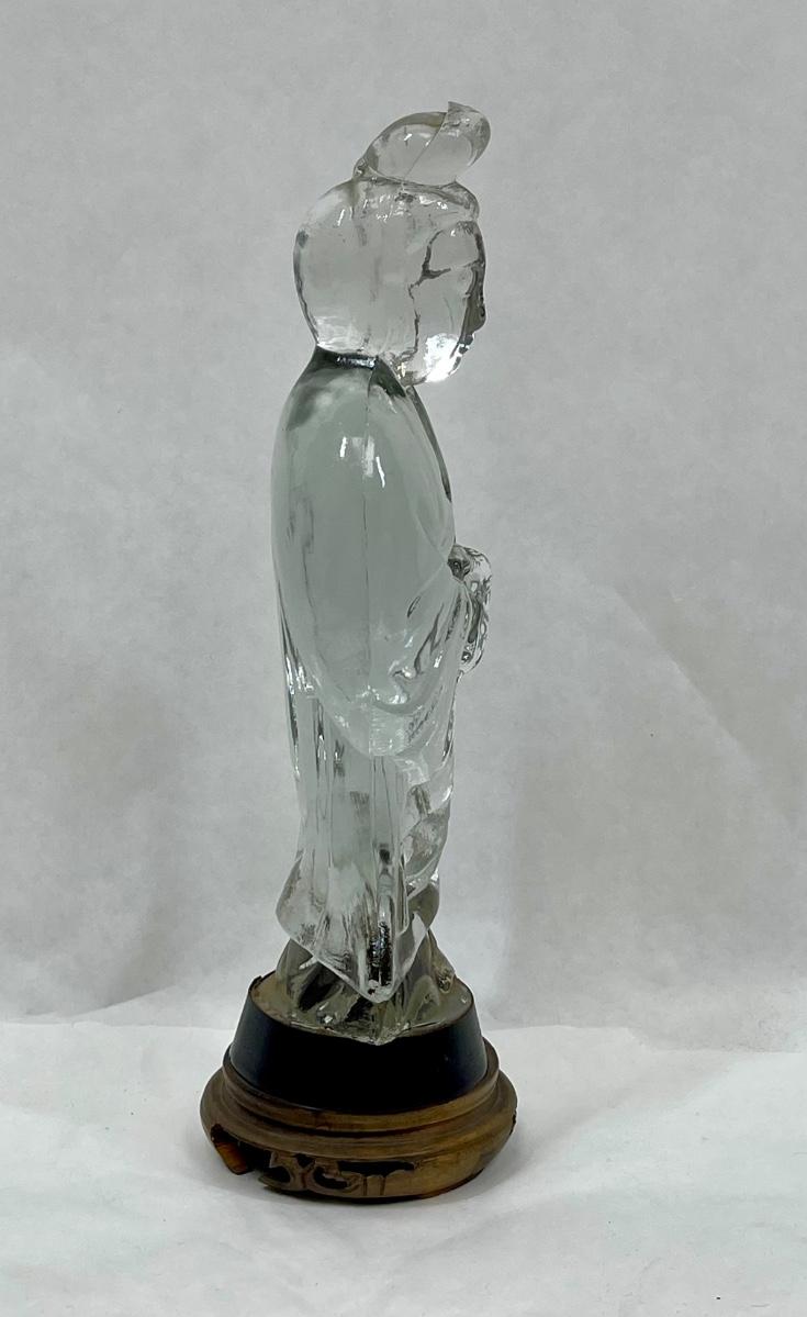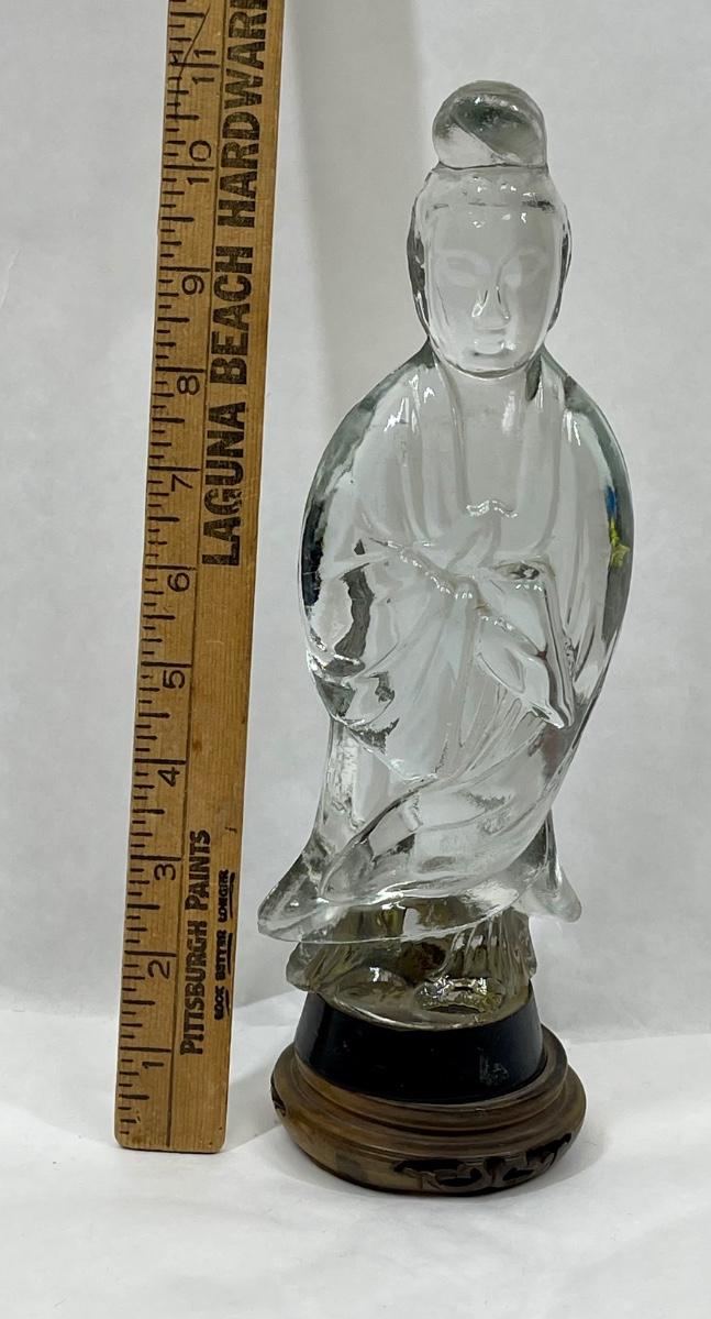 Clear Statue Crystal Goddess Buddha Kwan Yin on Brass base - believed to be Stueben