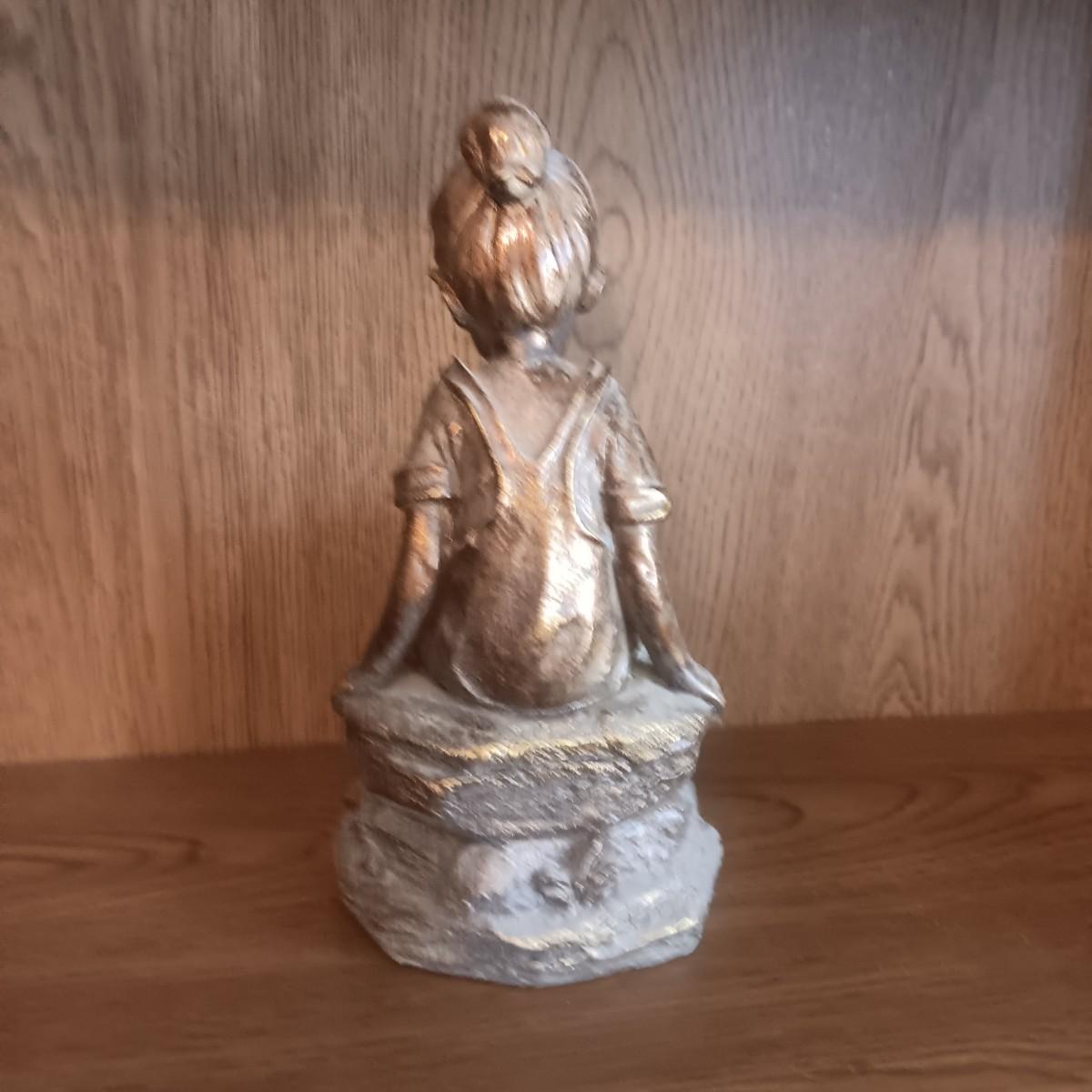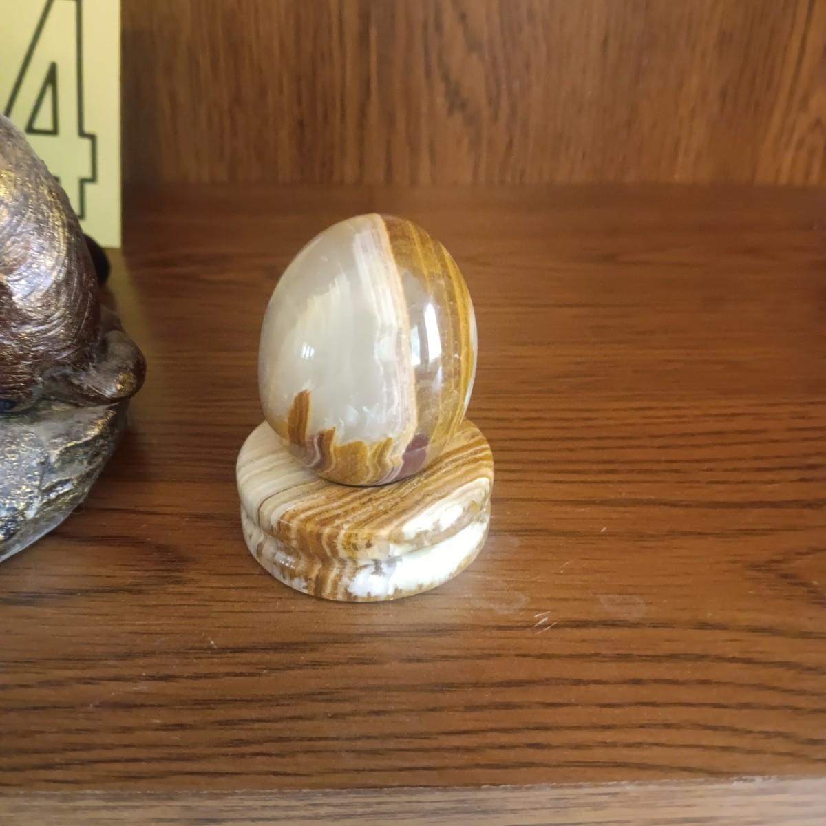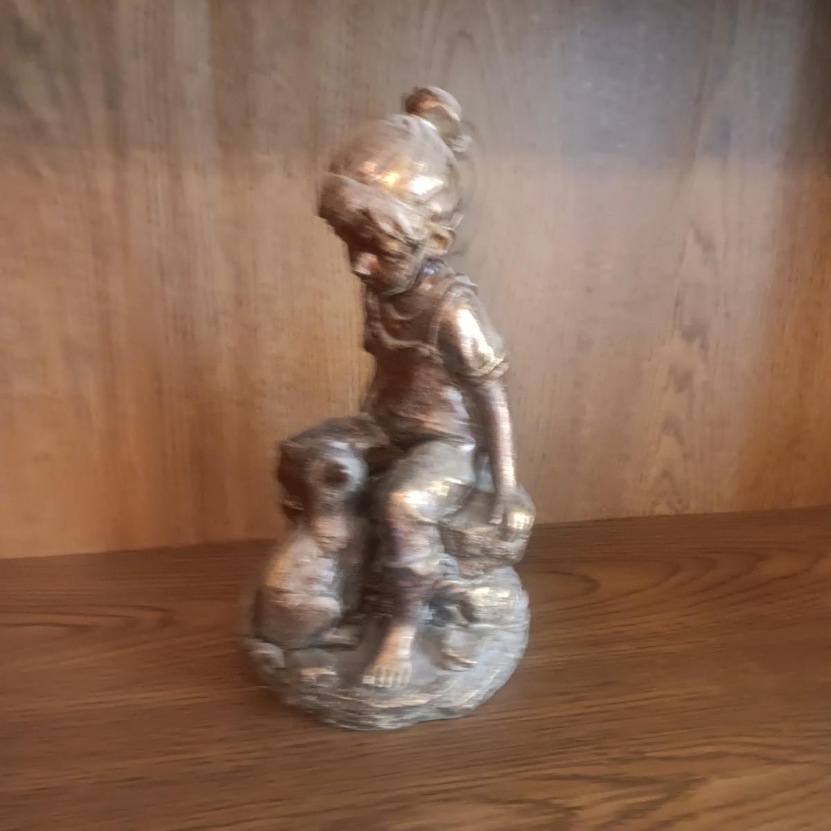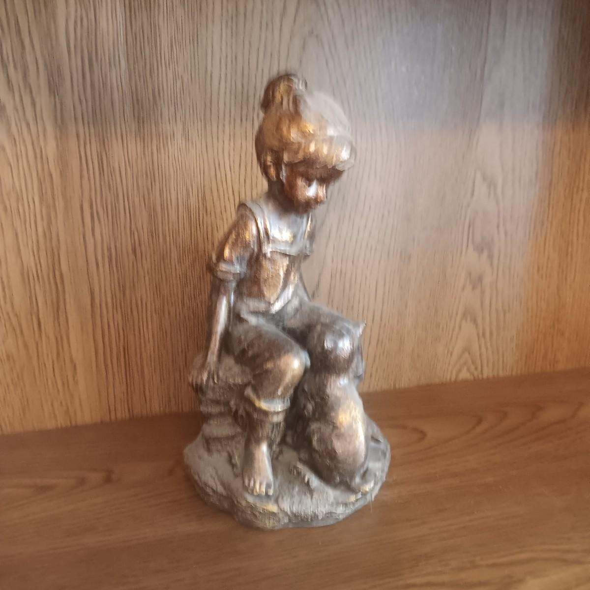 STATUE OF A GIRL AND CAT, MARBLE EGG, AVON COLOGNE HORSE AND AN AGATE
