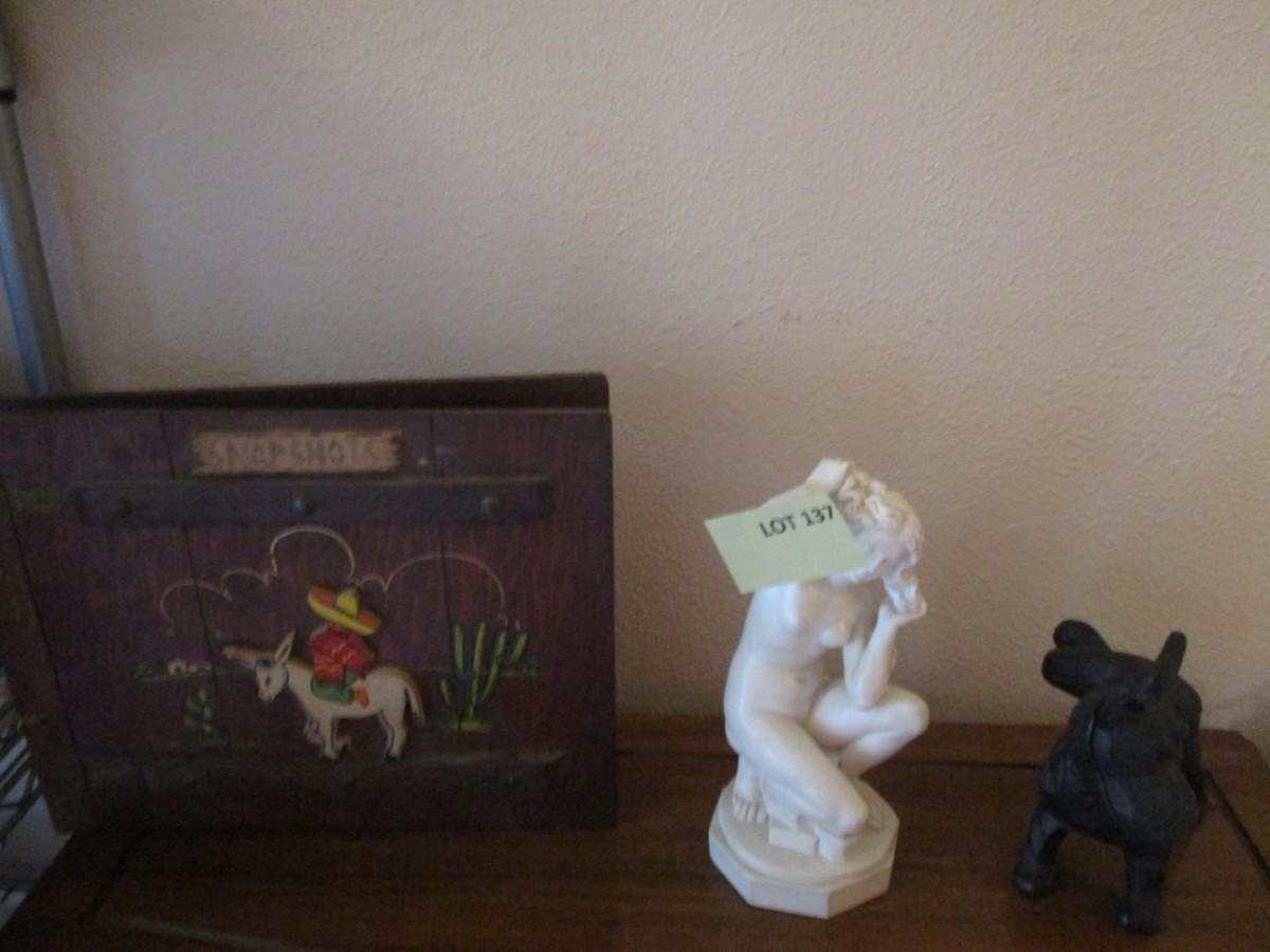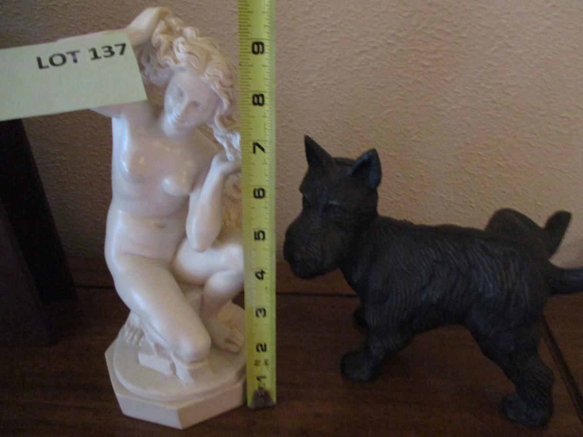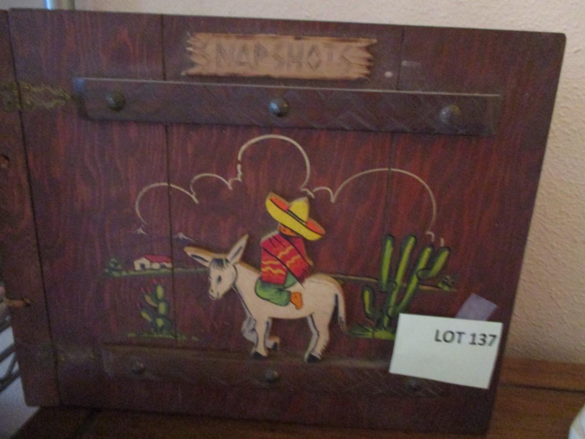 1935 Photo Album. Ceramic Statue, Iron Dog. 3pc