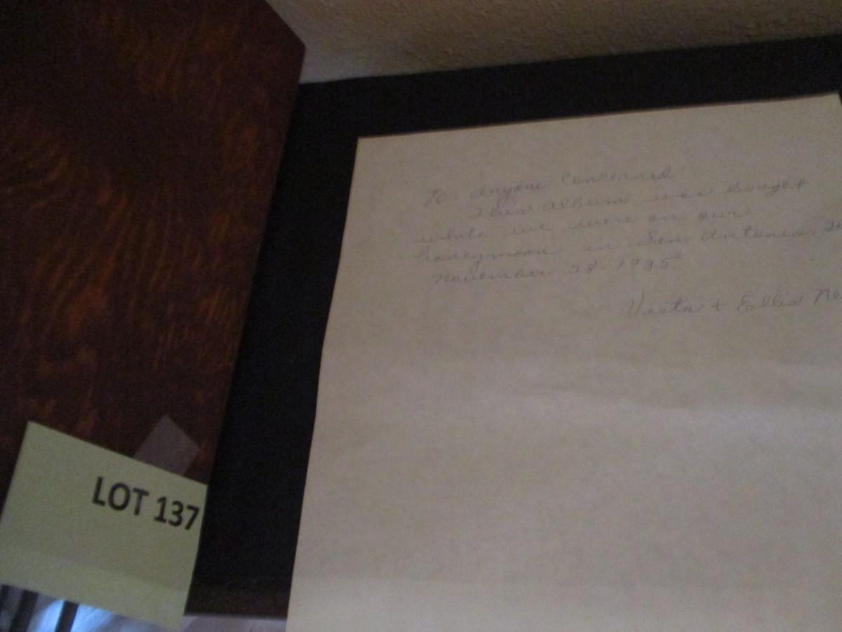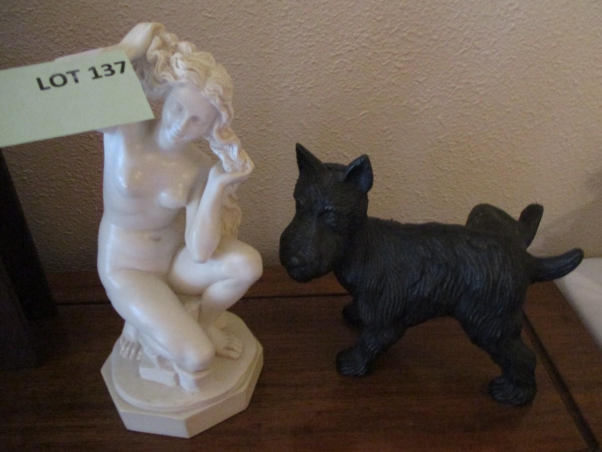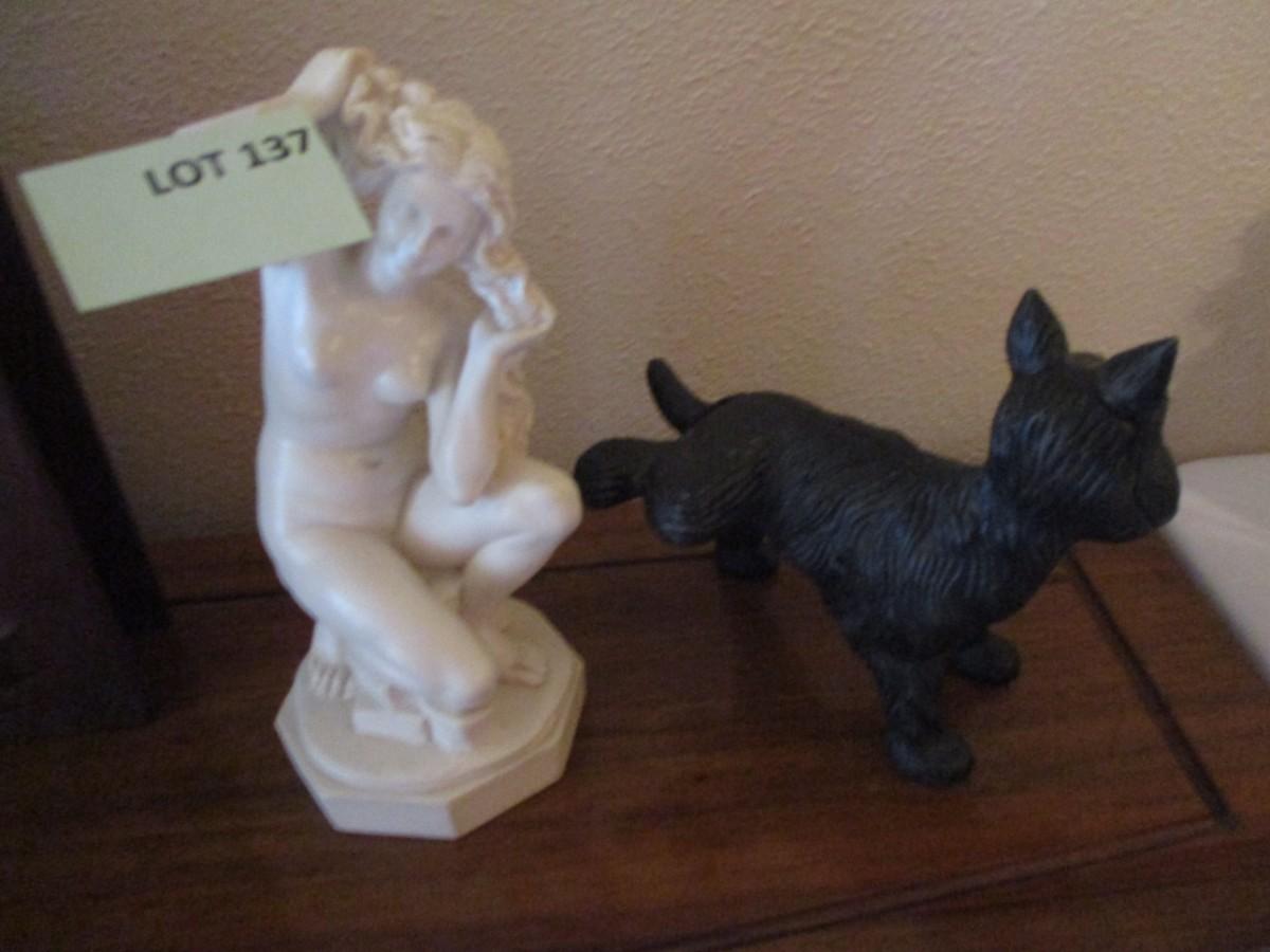 1935 Photo Album. Ceramic Statue, Iron Dog. 3pc