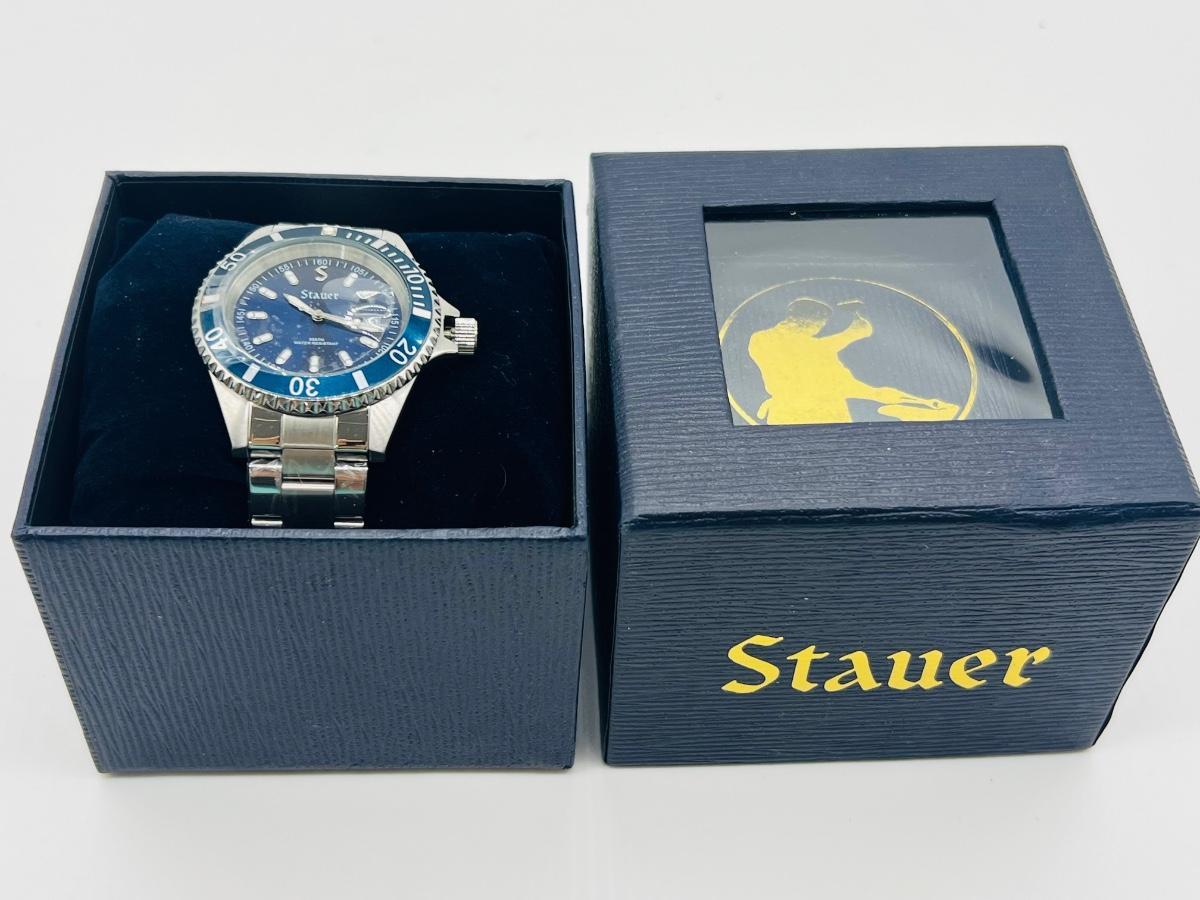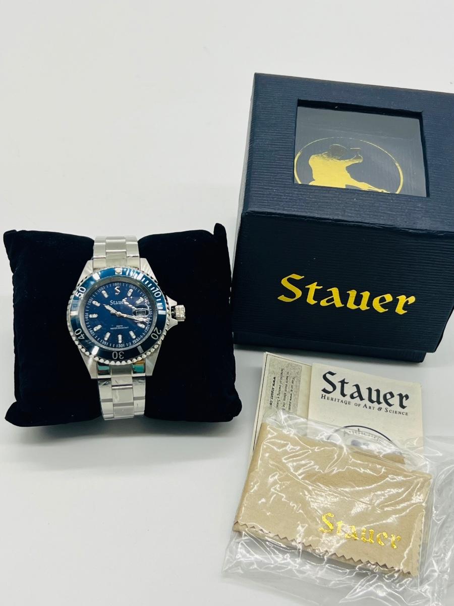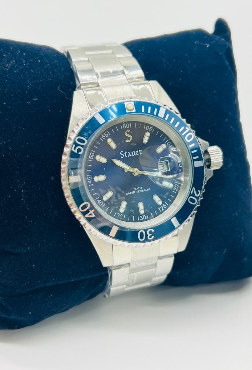 New Stauer Excursion Dive Watch 20ATM Watet Resistant silver & blue. STAUER Lexington Time Piece