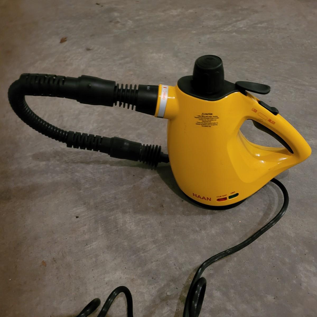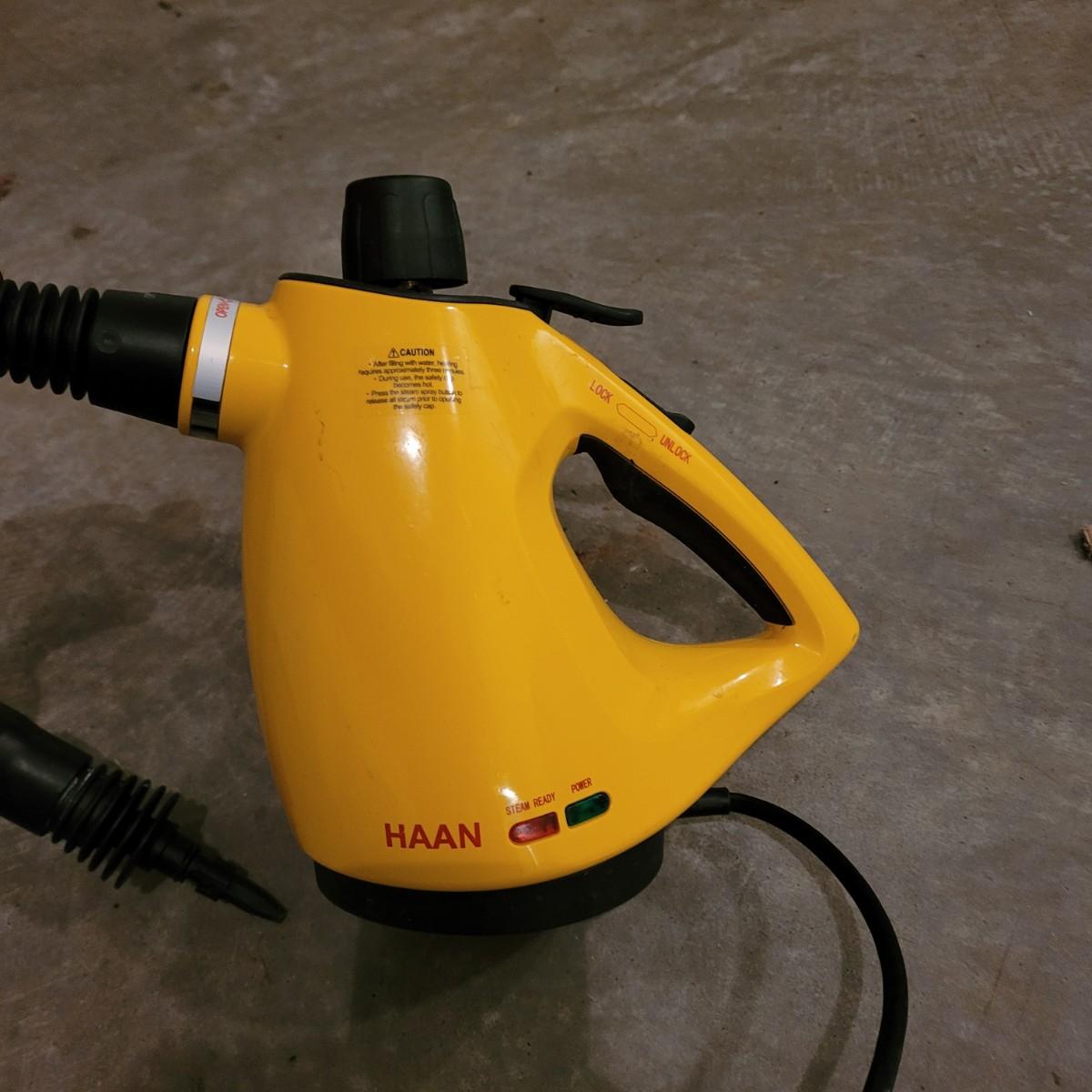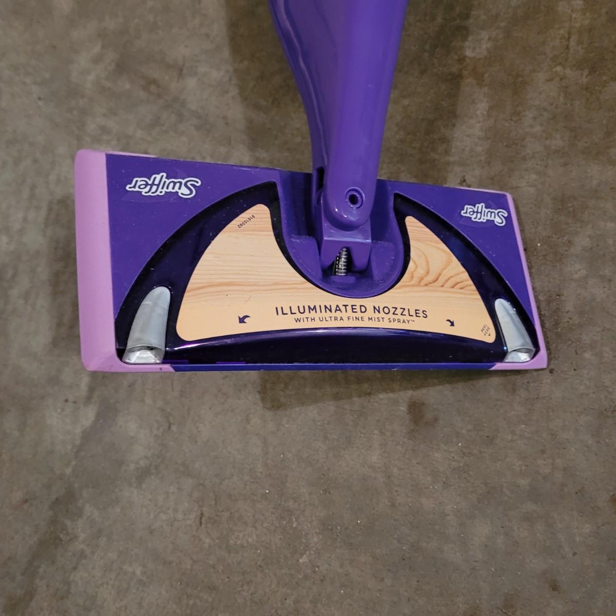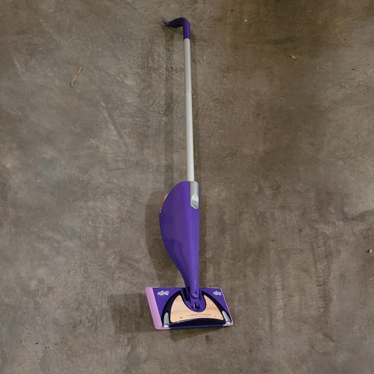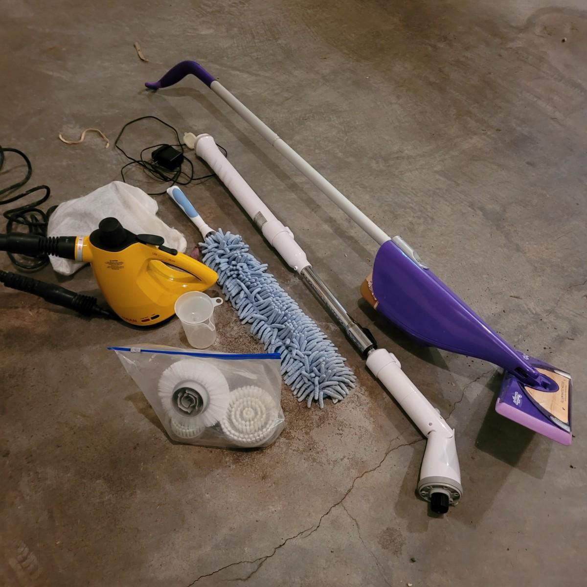 This lot includes a Swiffer Wet Jet, a Haan steamer, an electric scrubber, and dust wand.