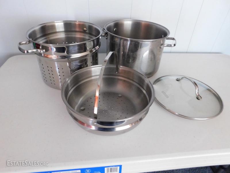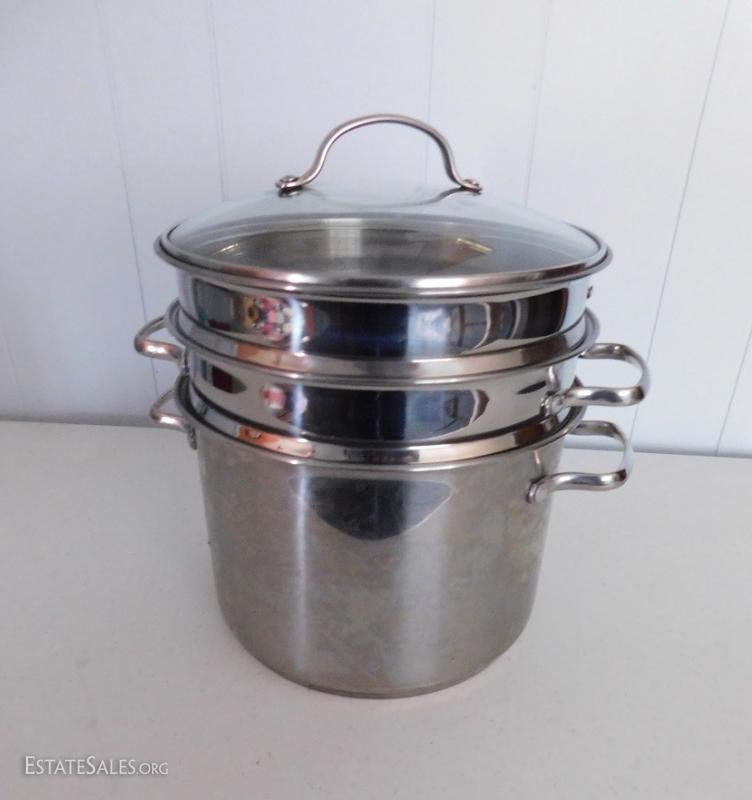 4 Piece steamer pan with insert and lid. Needs cleaning but in really good condition.