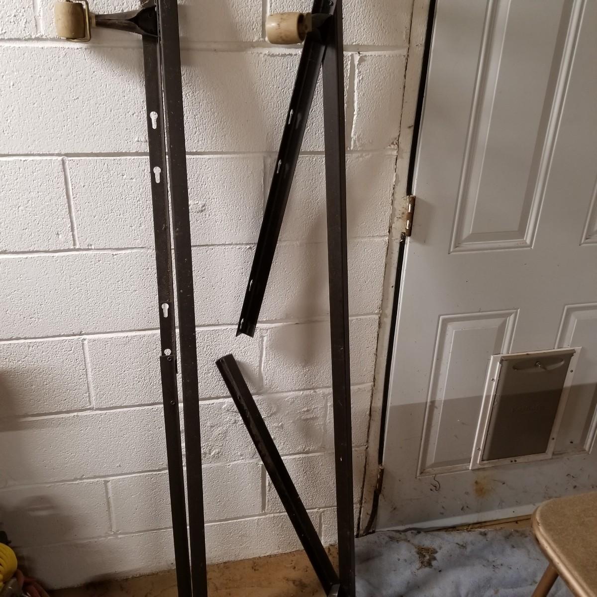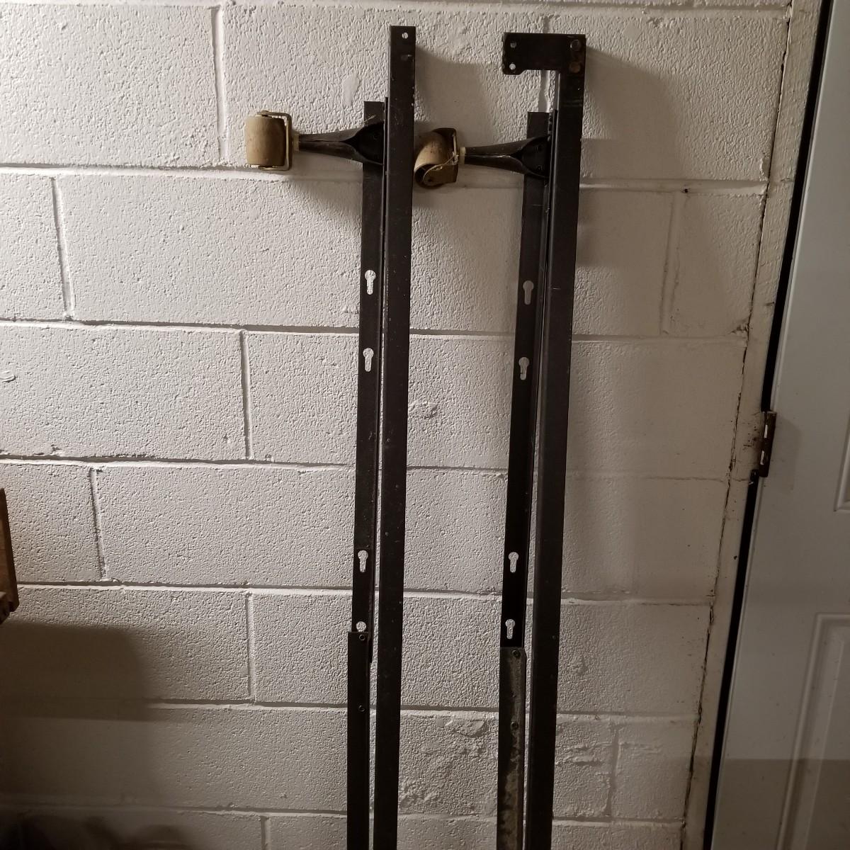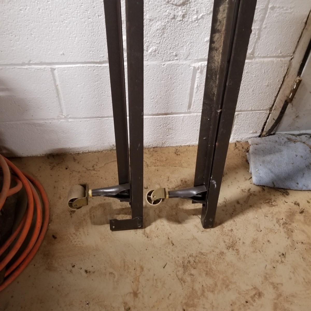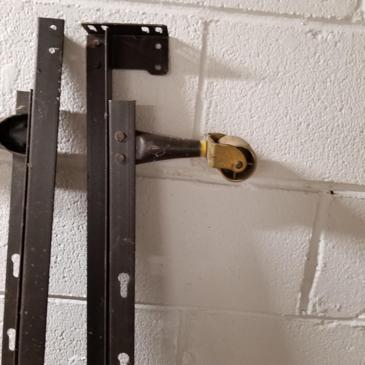 Adjustable steel bed frame.  Will fit twin up to queen size.  Frame is 63" long, has 2" oval plastic wheels.  No slats included.   Local pickup only.