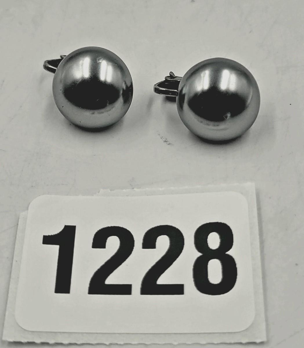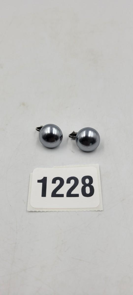 Steel Blue Button Style Clip On Earrings
