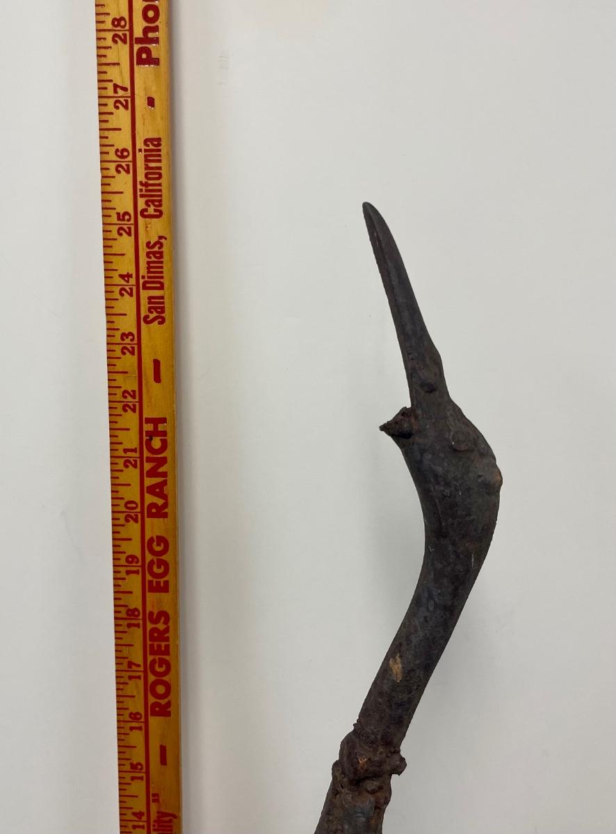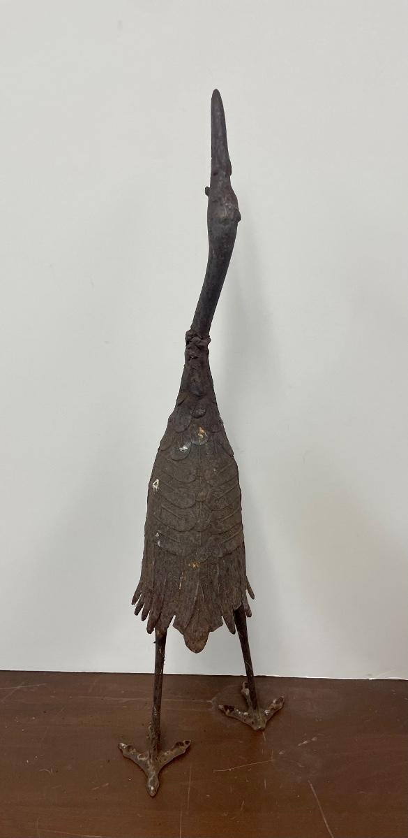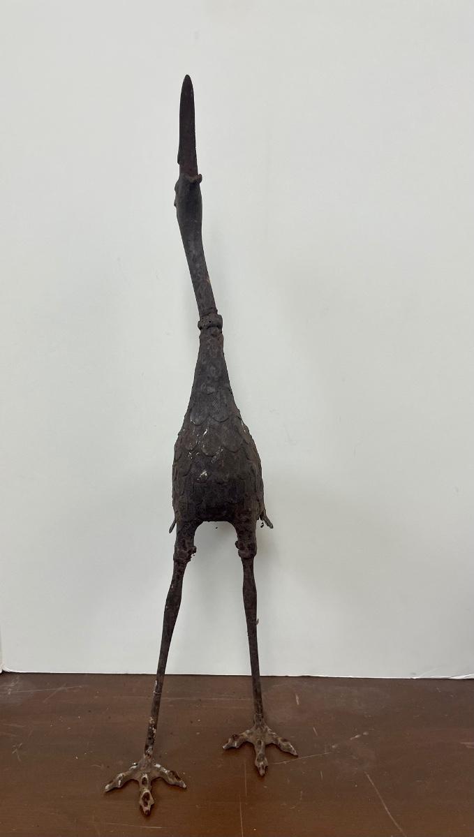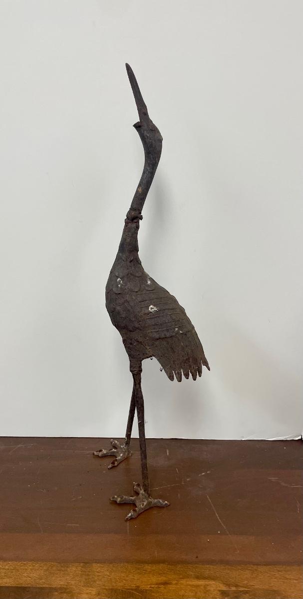 Steel Crane Garden Sculpture. Lots of surface rust, lower half of beak is missing. Approx 25” tall.
