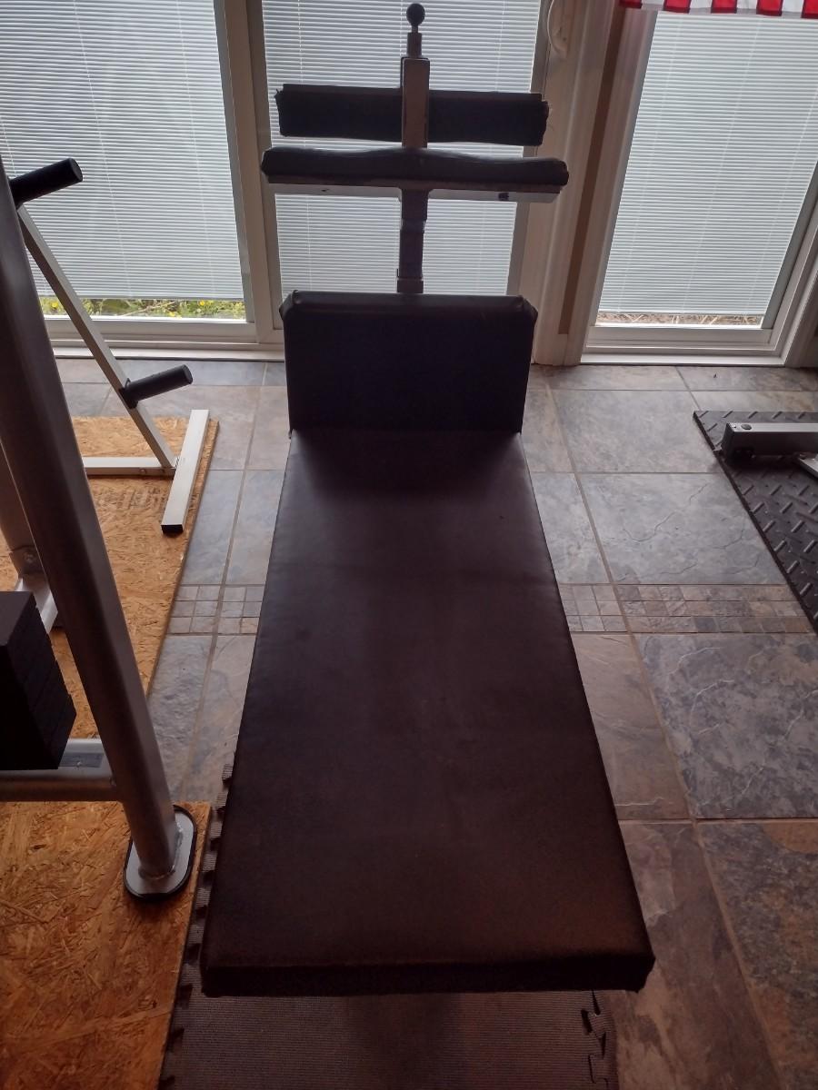 Steel Frame Padded Abdominal Sit-Up Horizonal Workout Bench. Bring tools to breakdown to remove from home gymnasium. Level to driveway.