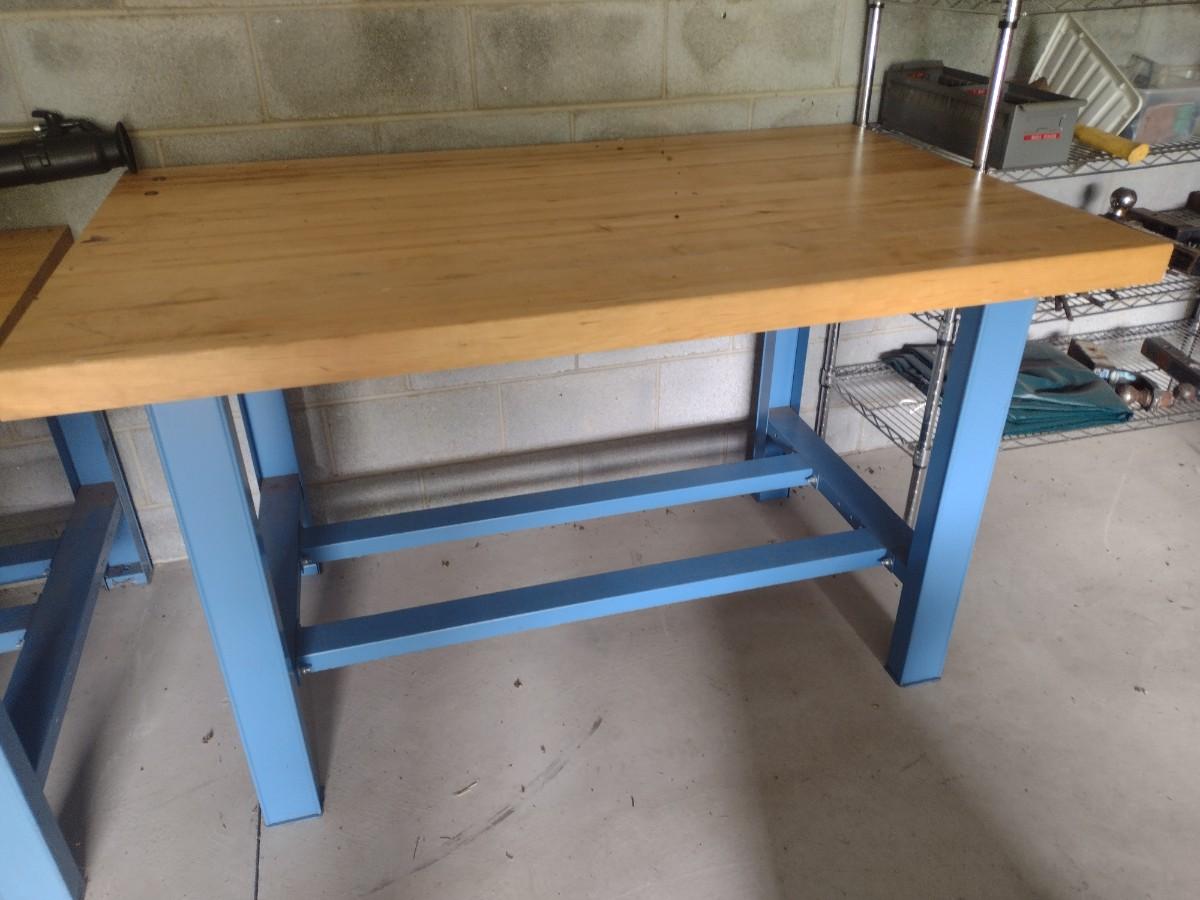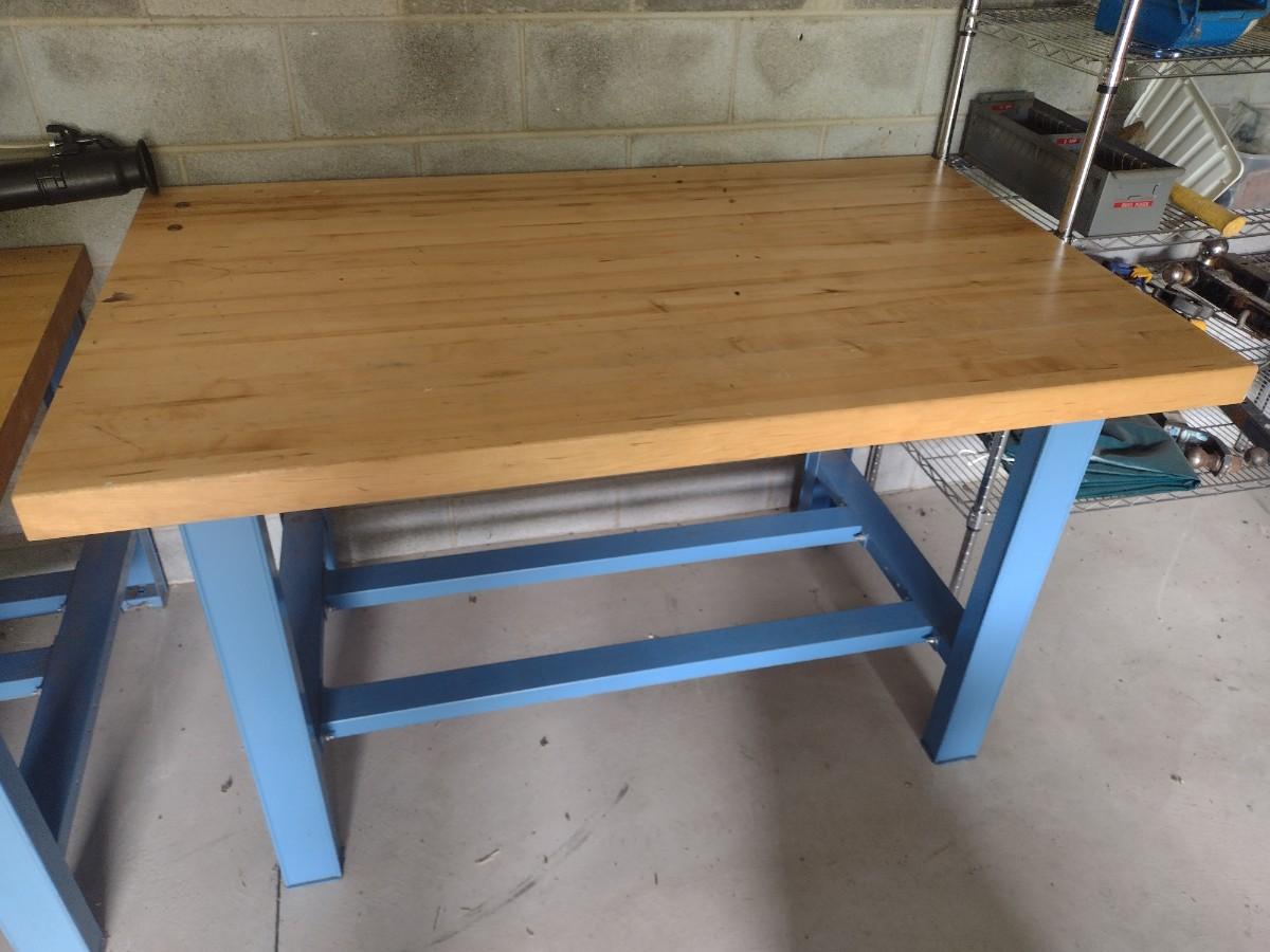 Steel Frame Work Table with Solid Wood Surface Heavy Duty Shop Table 60"