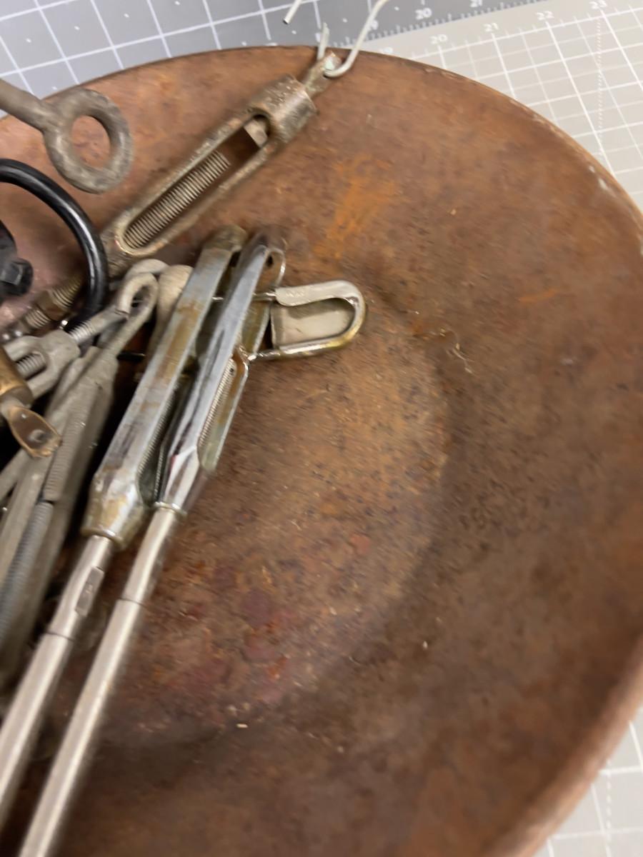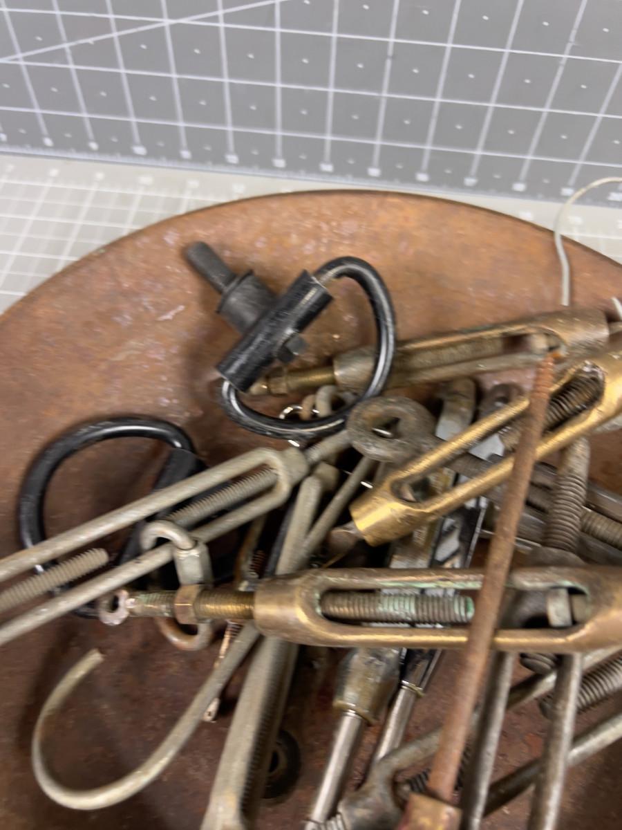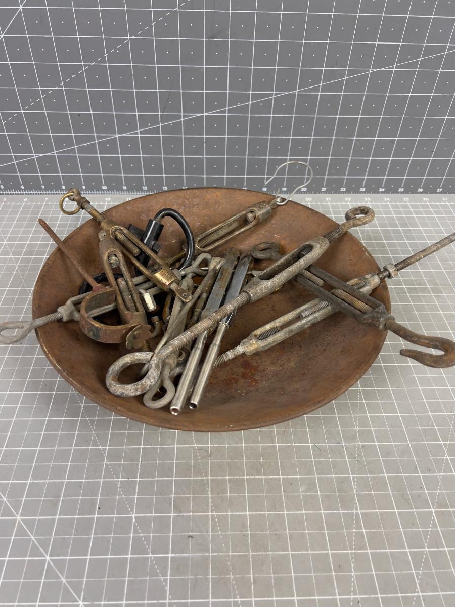 Steel Pan Full of Old Turn Buckles
