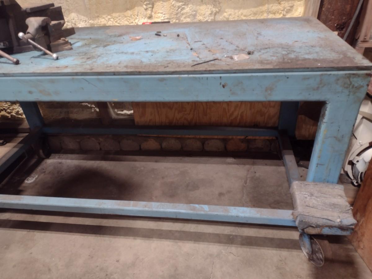 Steel Table Industrial Castor Roll Shop Table (No Contents)