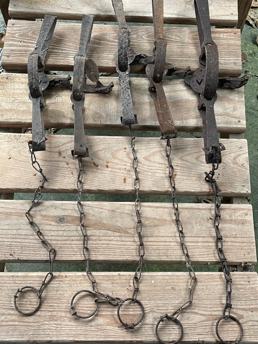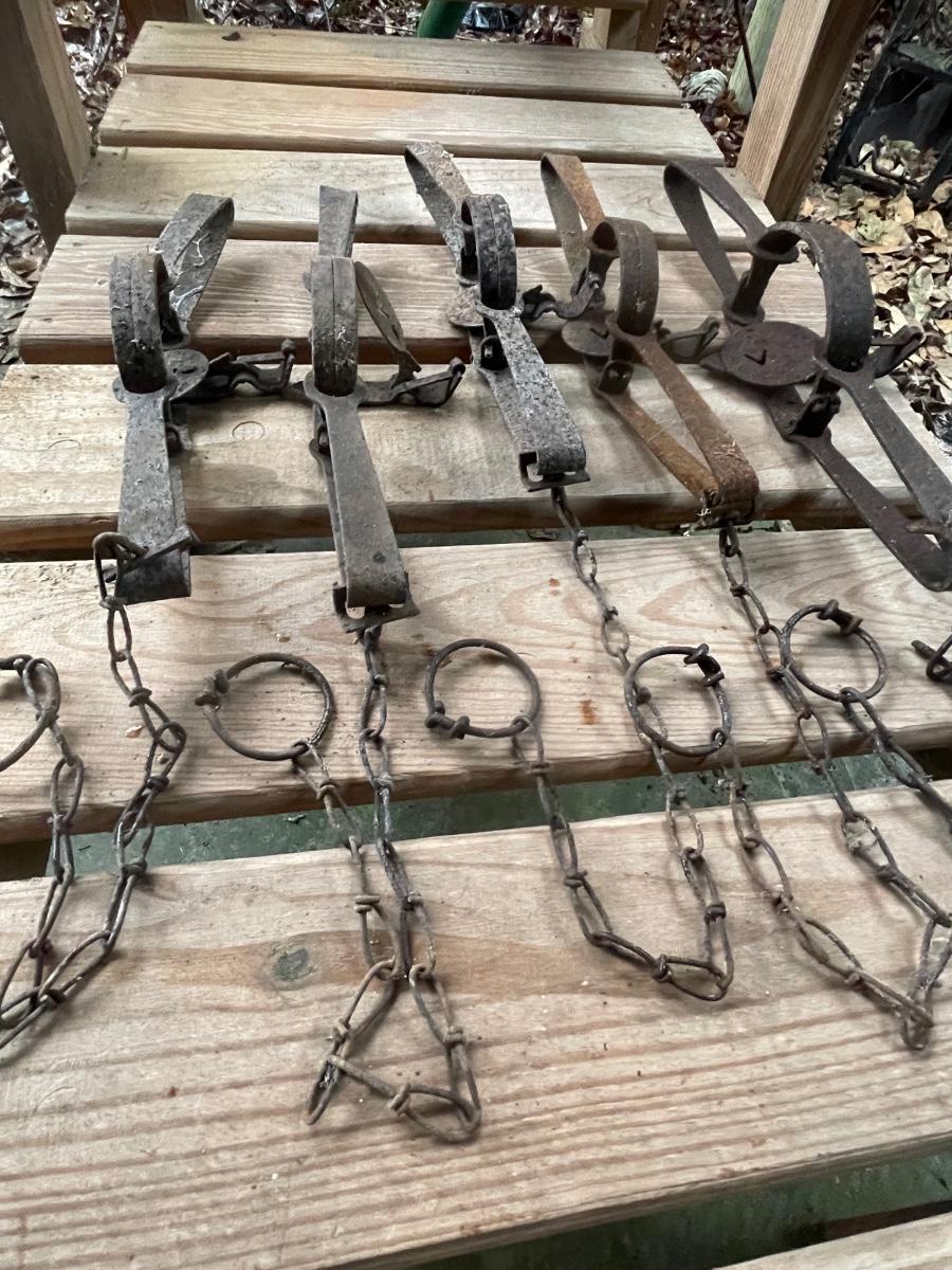 5 steel traps in vintage condition. Use in a man cave or use for intended purposes.