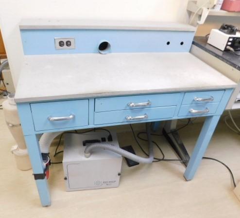 Steel Work Bench with Multiple Drawer System, Burn Proof Table Top, Electrical Outlet, & Gas/Air/Vacuum Ports Blue...42"x24"x39" Desk only
