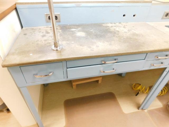 Steel Work Bench with Multiple Drawer System, Burn Proof Table Top, Electrical Outlet, & Gas/Air Ports