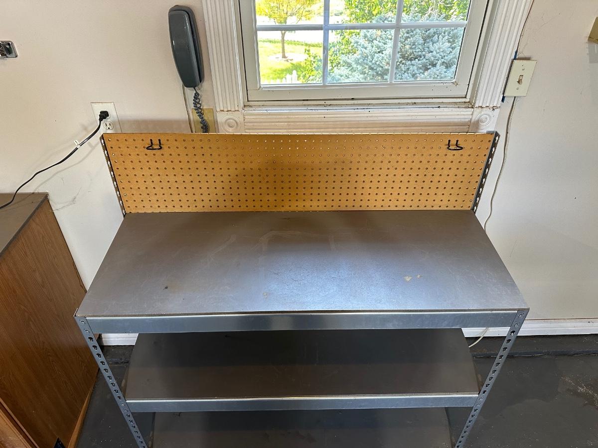STEEL WORKBENCH WITH PEGBOARD BACK