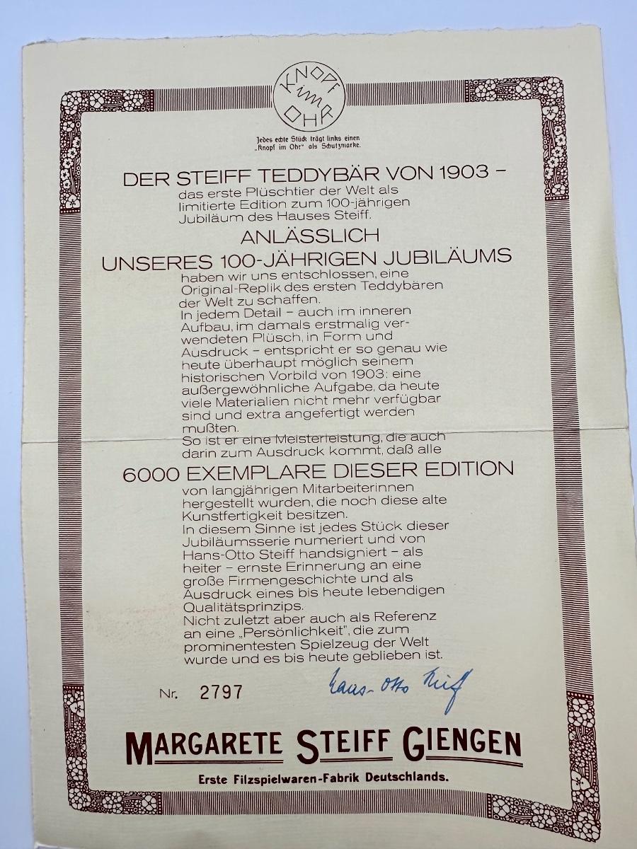 Steiff 17” 100th Anniversary “Papa” Bear 0153/43 (1981)