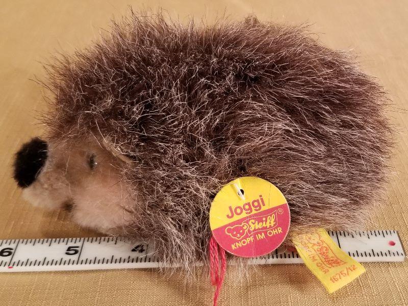 This nifty Steiff Hedgehog - “Joggi” plush measures 6-inches in length. It appears to be in great condition. The creature has the unique ear tag and other tags associated with Steiff collectibles.