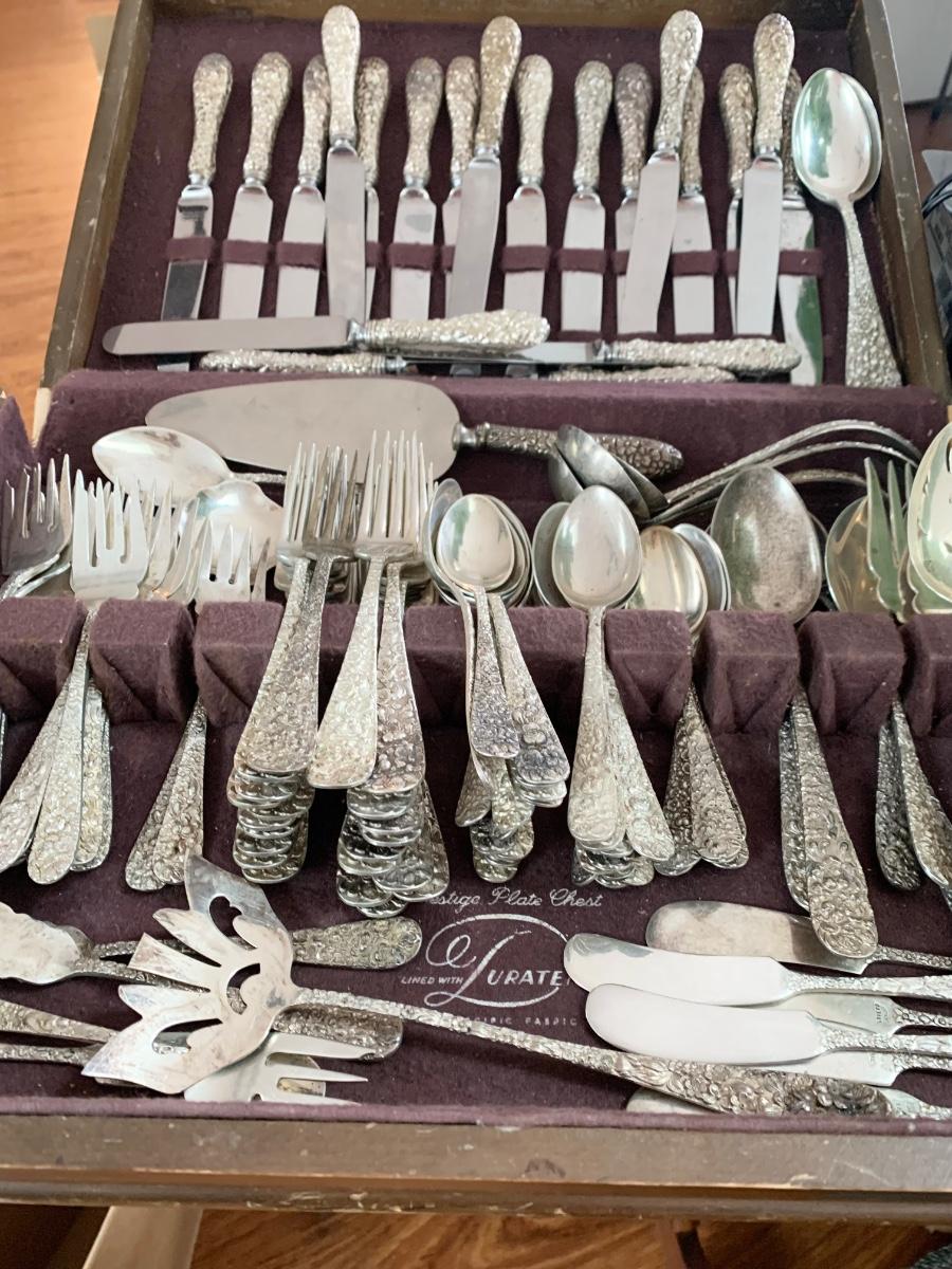 Stieff Repousee Sterling Silver Flatware 4,444 Grams 125 Pieces