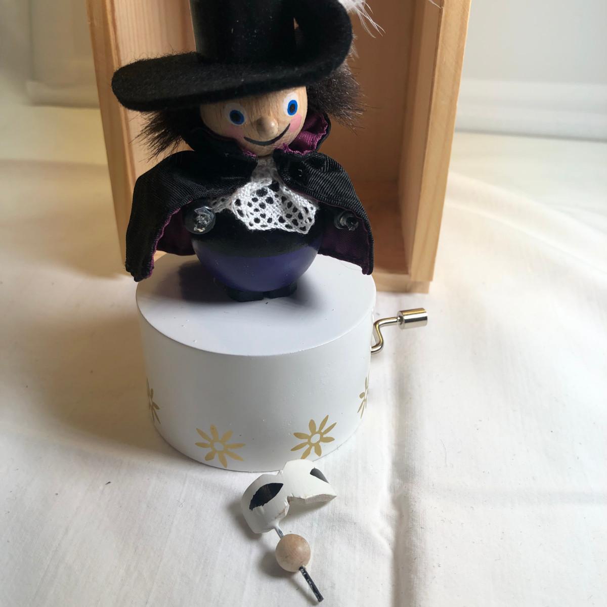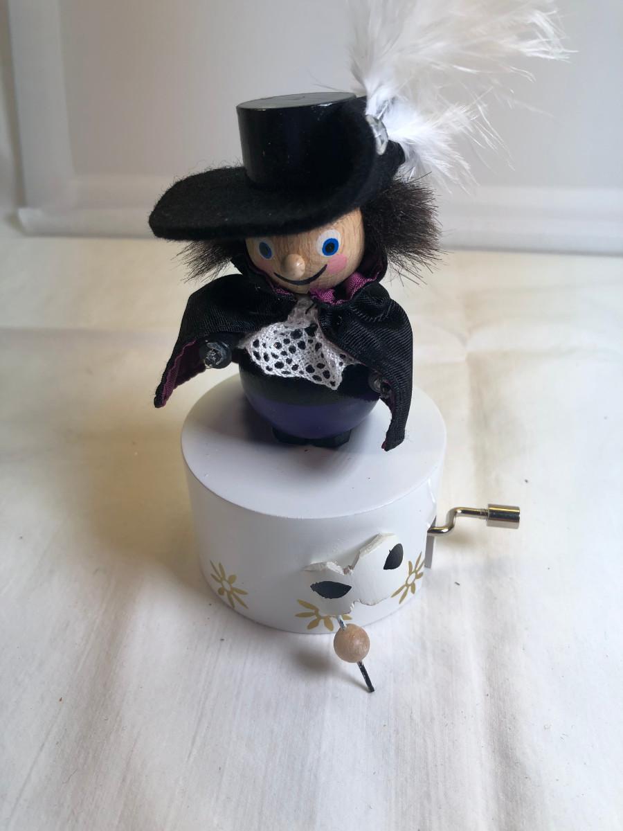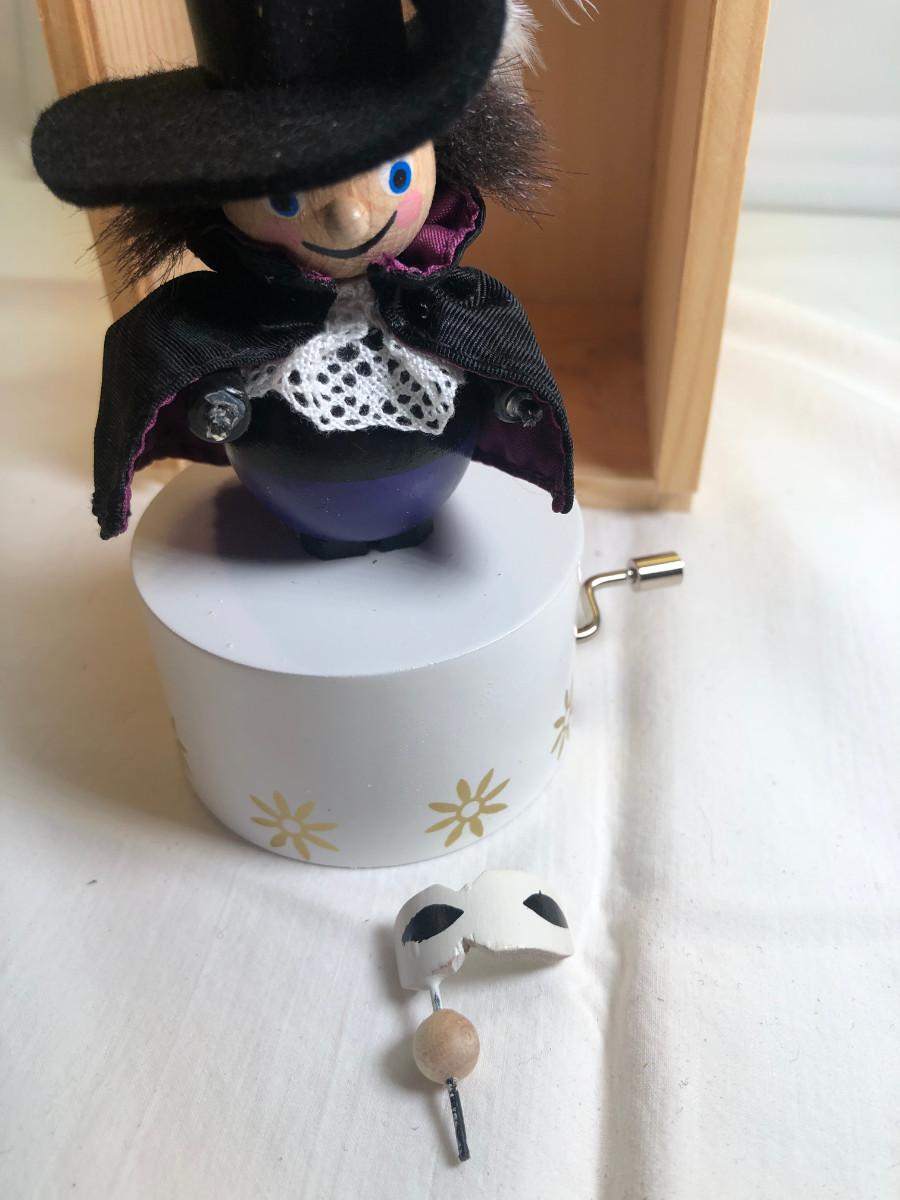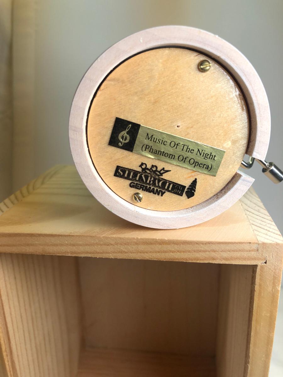 MUSIC BOX PLAYS MUSIC OF THE NIGHT NEW IN CRATE MADE IN GERMANY Steinbach Germany Phantom of the Opera music box. The music box is powered by a crank placed at the side of the base and plays “˜Music of the Night’ originally written by Andrew Lloyd Weber for the stage adaptation based off the 1909 novel Le Fantôme de l’Opéra by Gaston Leroux.