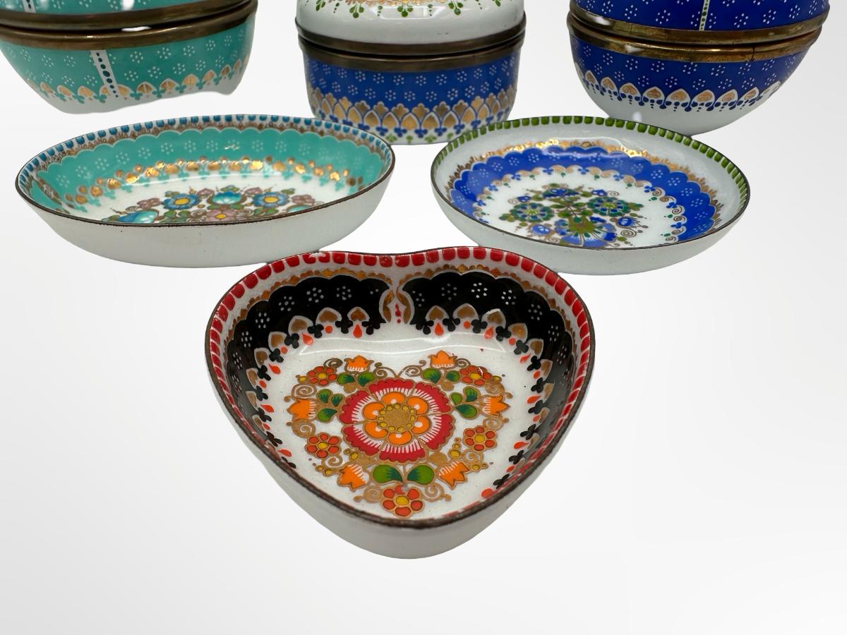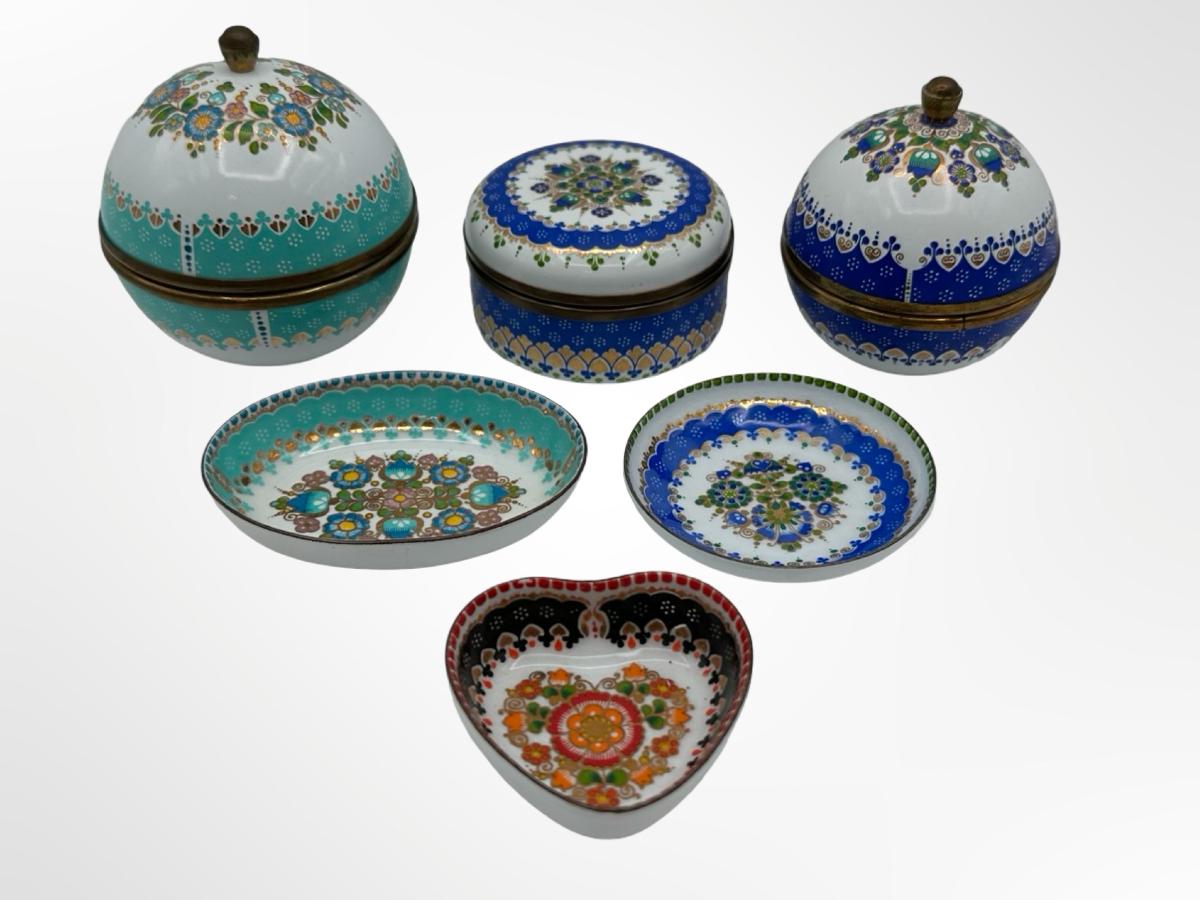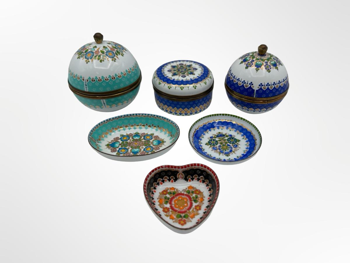 Set of 7 Steinböck Hand-Painted Austrian Enamel Trinket Dishes.