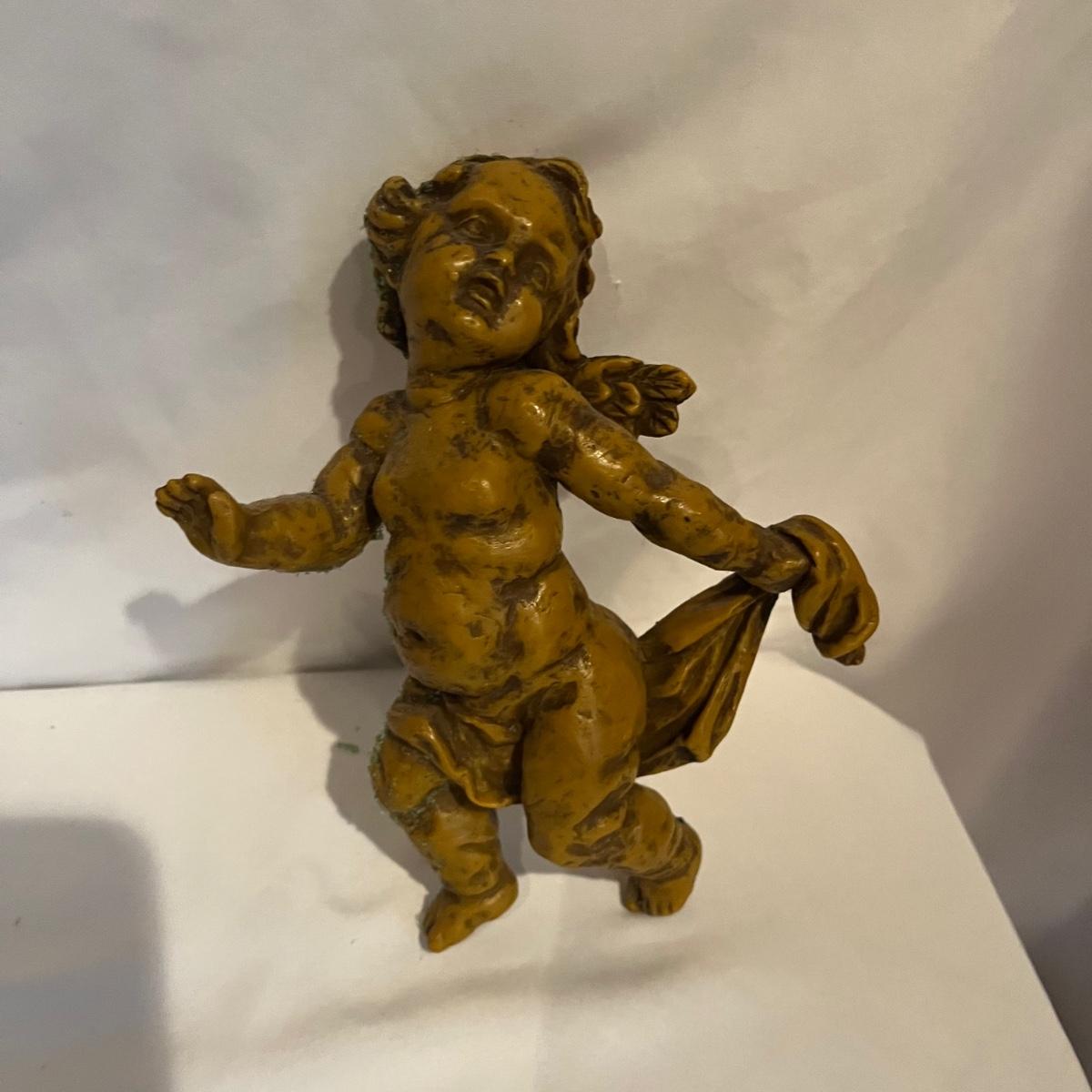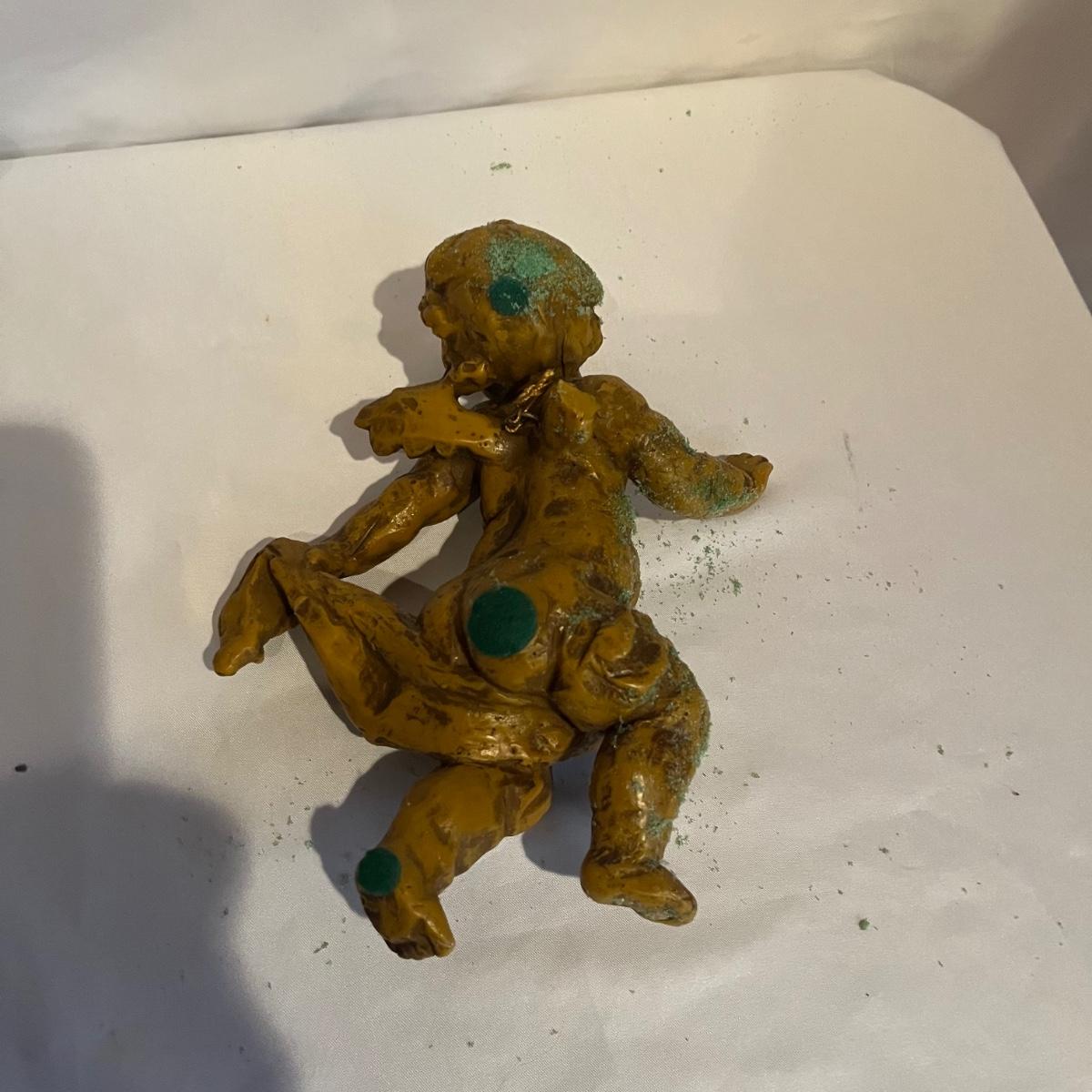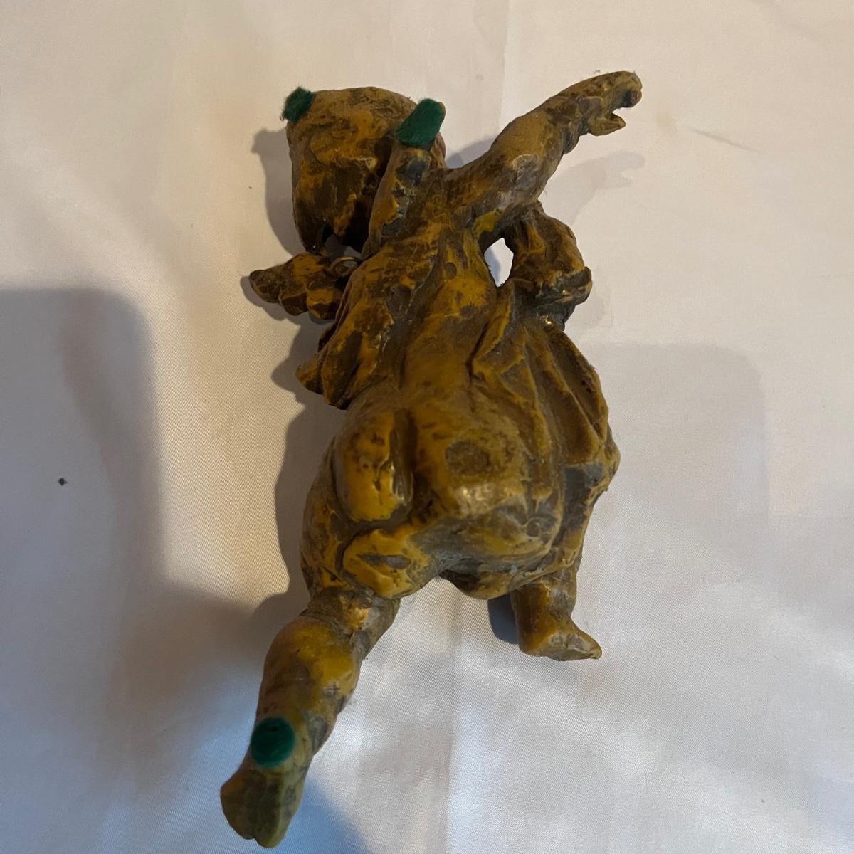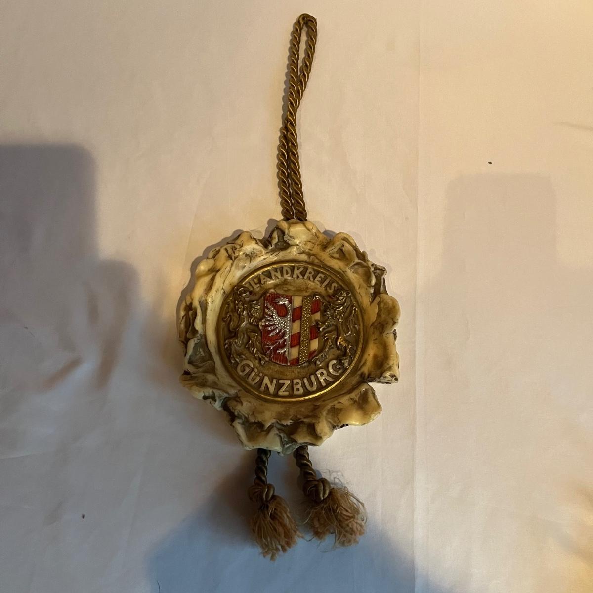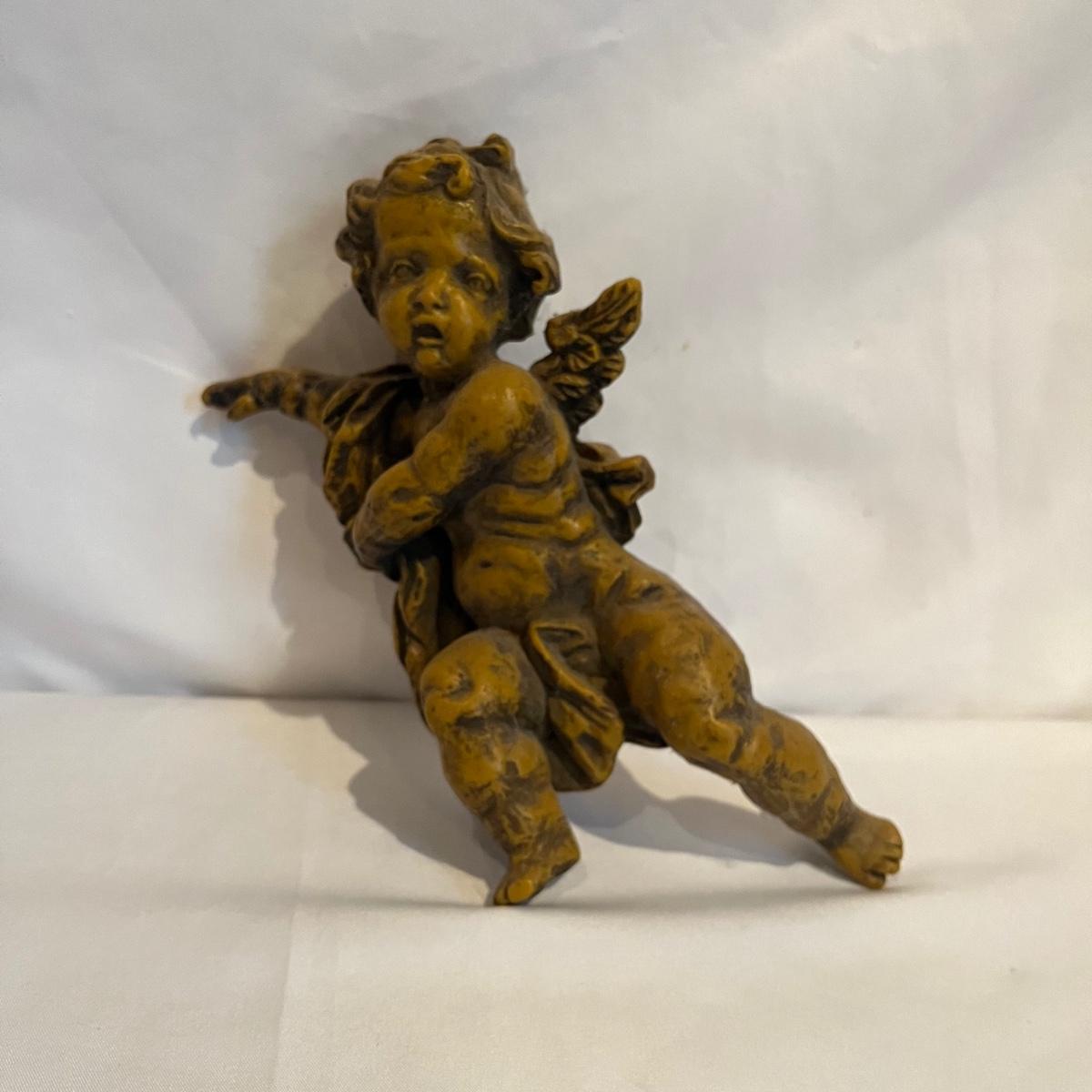 Lot includes two figurines, and two wall hanging wax pieces. The rose wall hanging is marked Steinhart and the other three are unmarked but appear to be the same style. Circular piece measures 6.5”D.