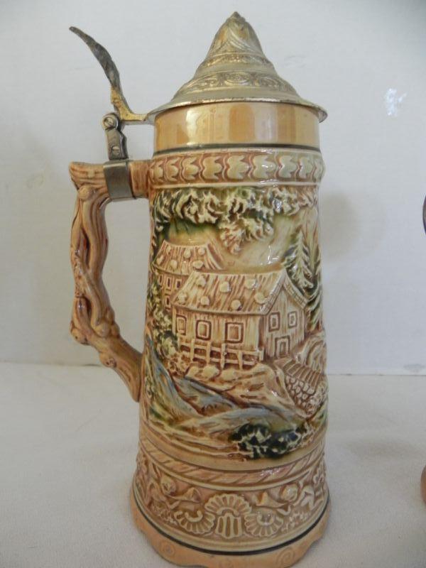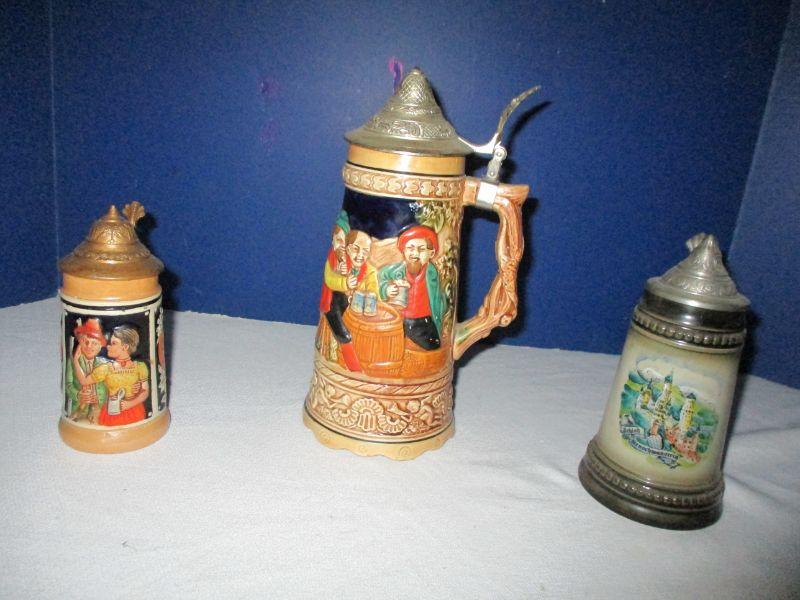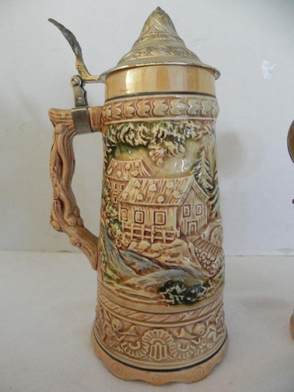 *NICE GERMAN BEER STEINS WITH LIDS WITH ONE BEING A MUSIC BOX IN WORKING CONDITION