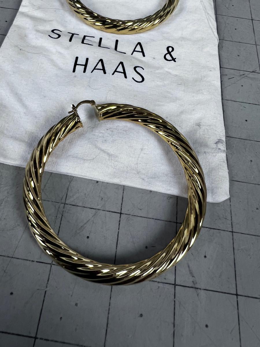 3" Hoop Earrings in Bag. Used. Gold Tone.