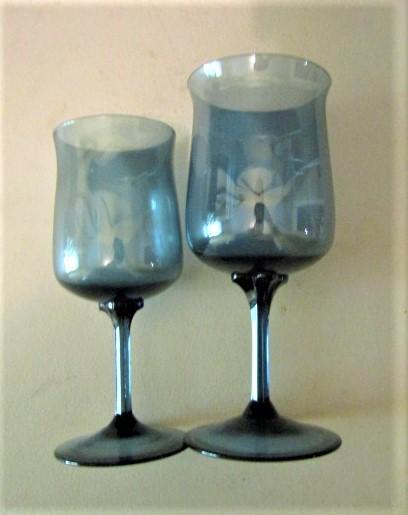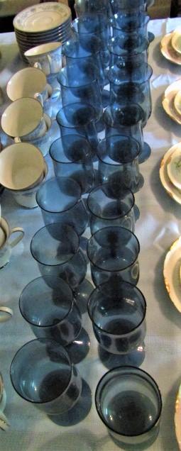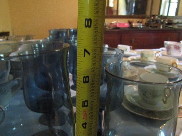 Stemmed Drink Ware by Lenox: Two Dozen Total. Twelve 6 1/4" High, and Twelve 7" High. Each Piece is Solid Blue with no Etching.