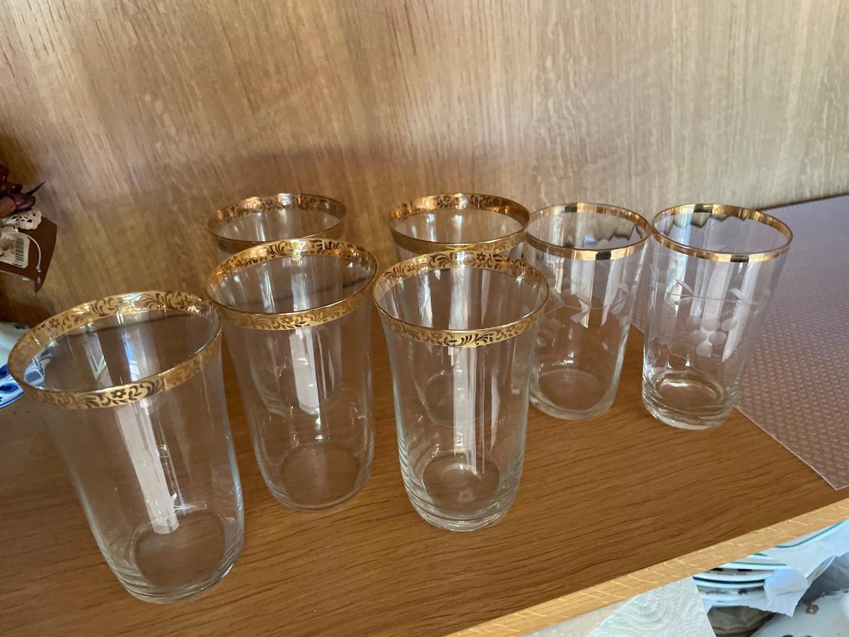 Gold rimmed and etched vintage wine glass
