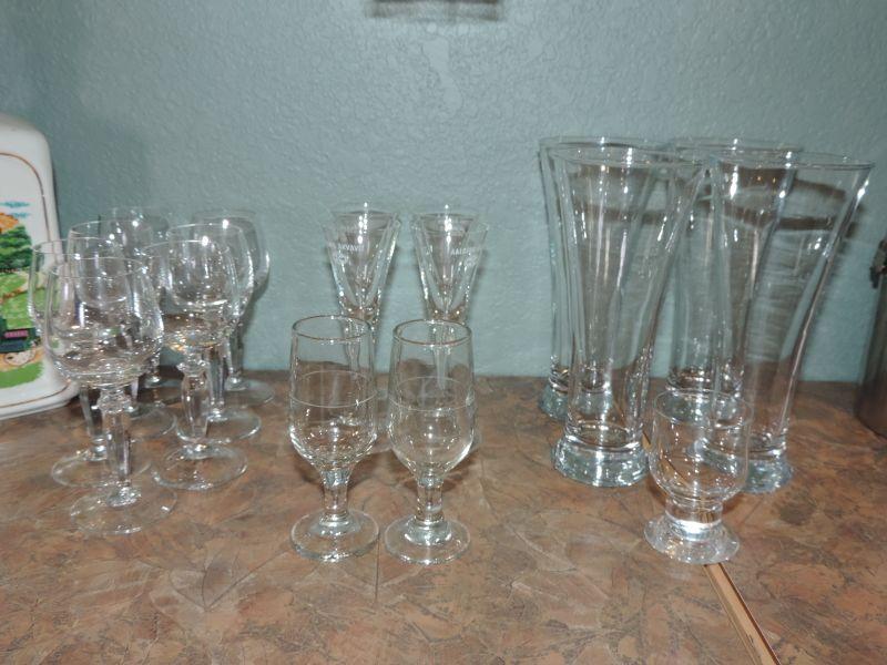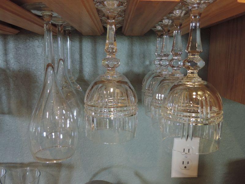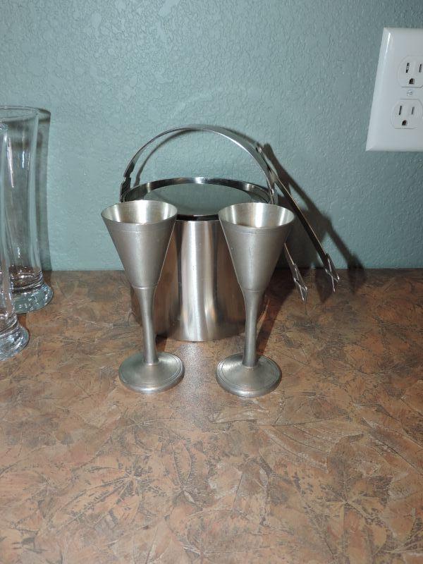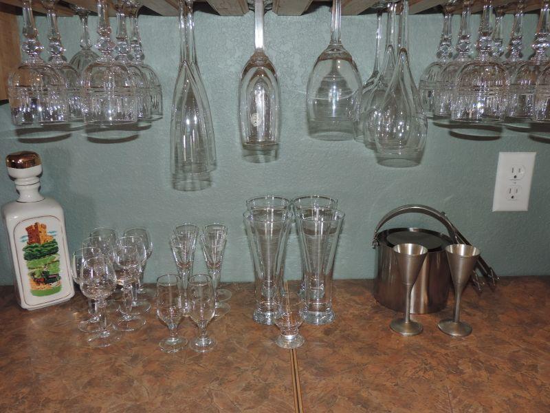 *STAINLESS STEEL ICEBUCKET AND ICE TONGS, NICE VARIETY OF GLASS AND CRYSTAL STEMWARE, AND CERAMIC DECANTER