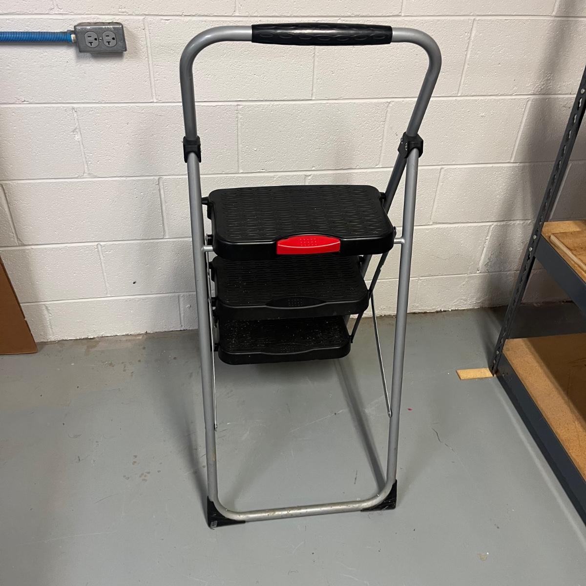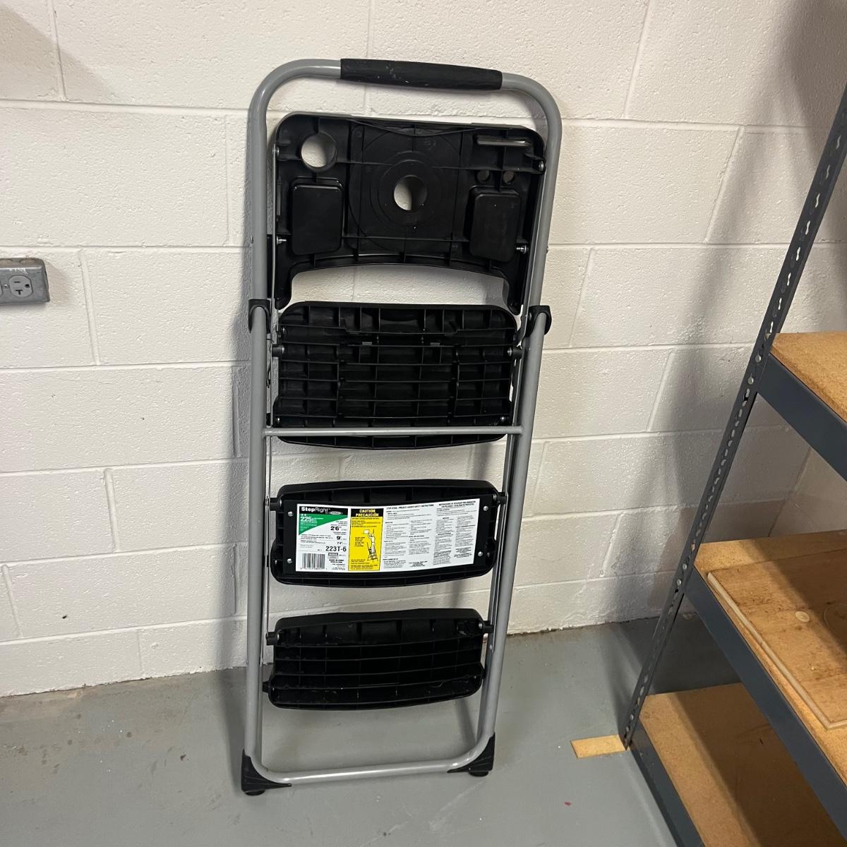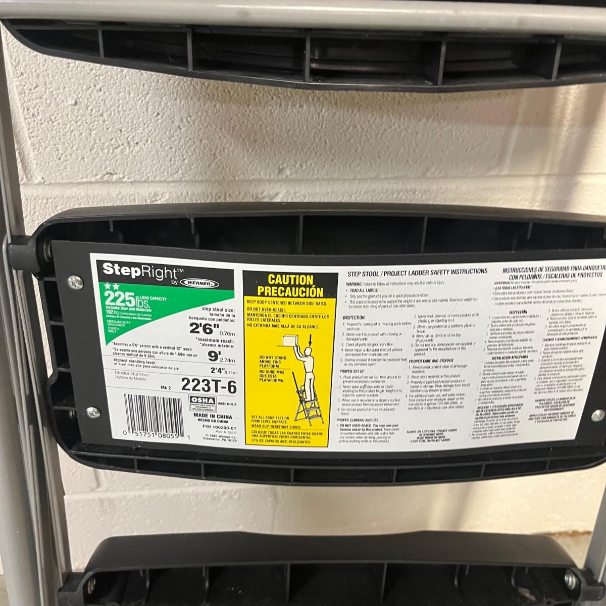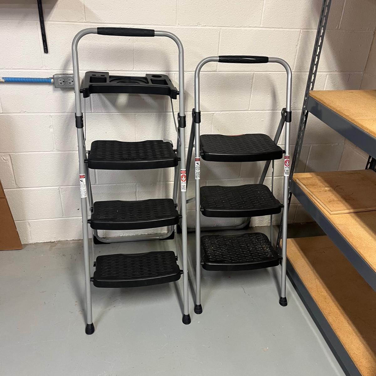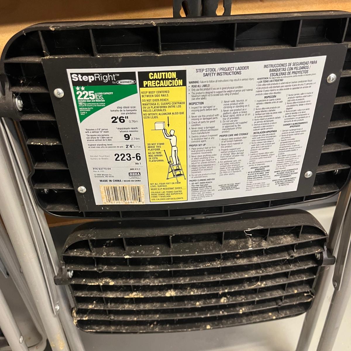 Lot includes two Step Right by Werner Aluminum and plastic step stools. Largest step stool measures 18” x 24” x 47”H.