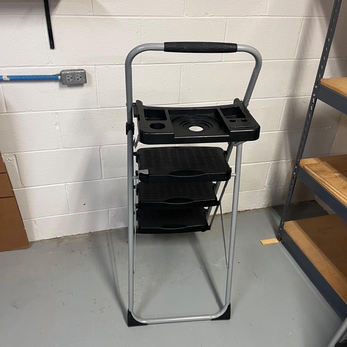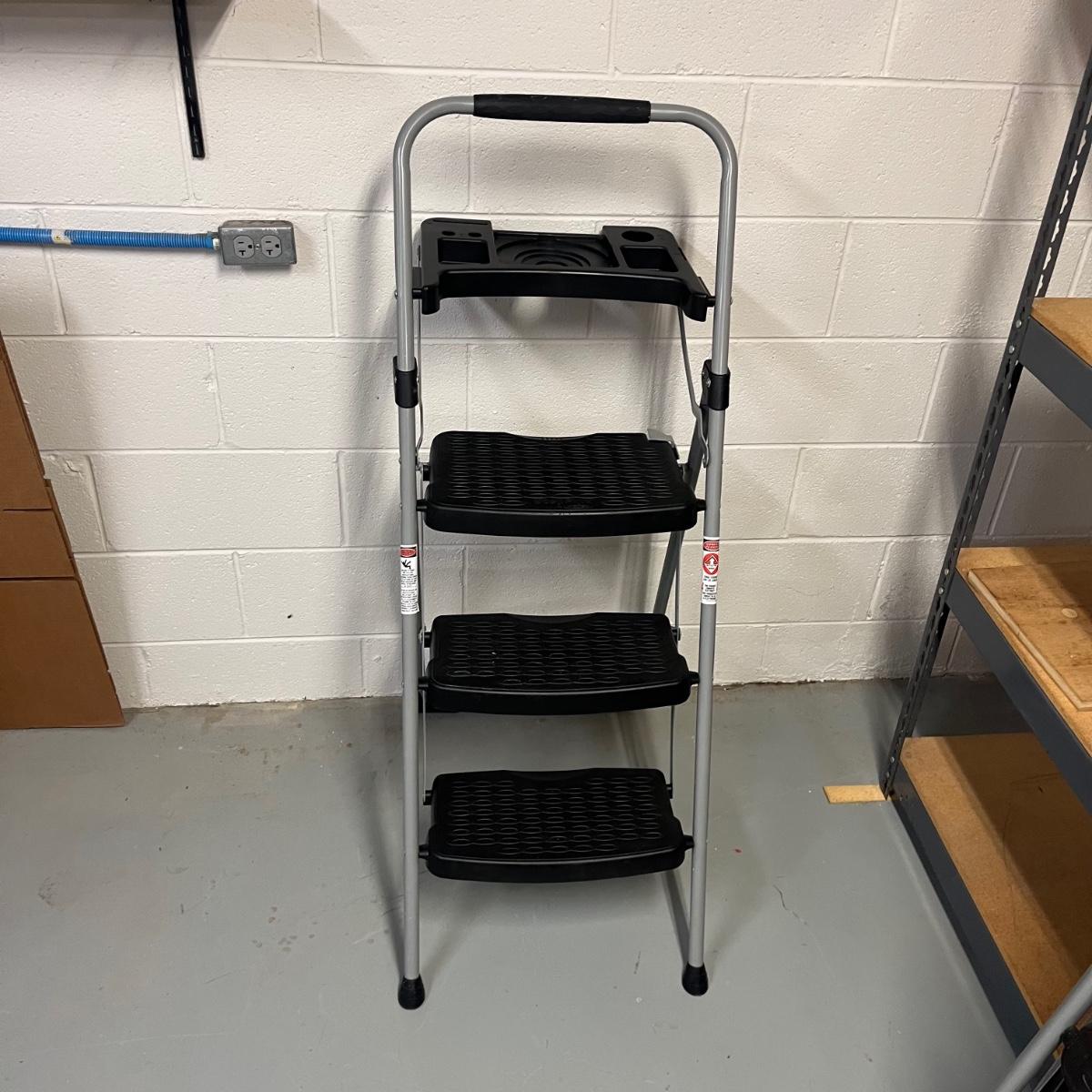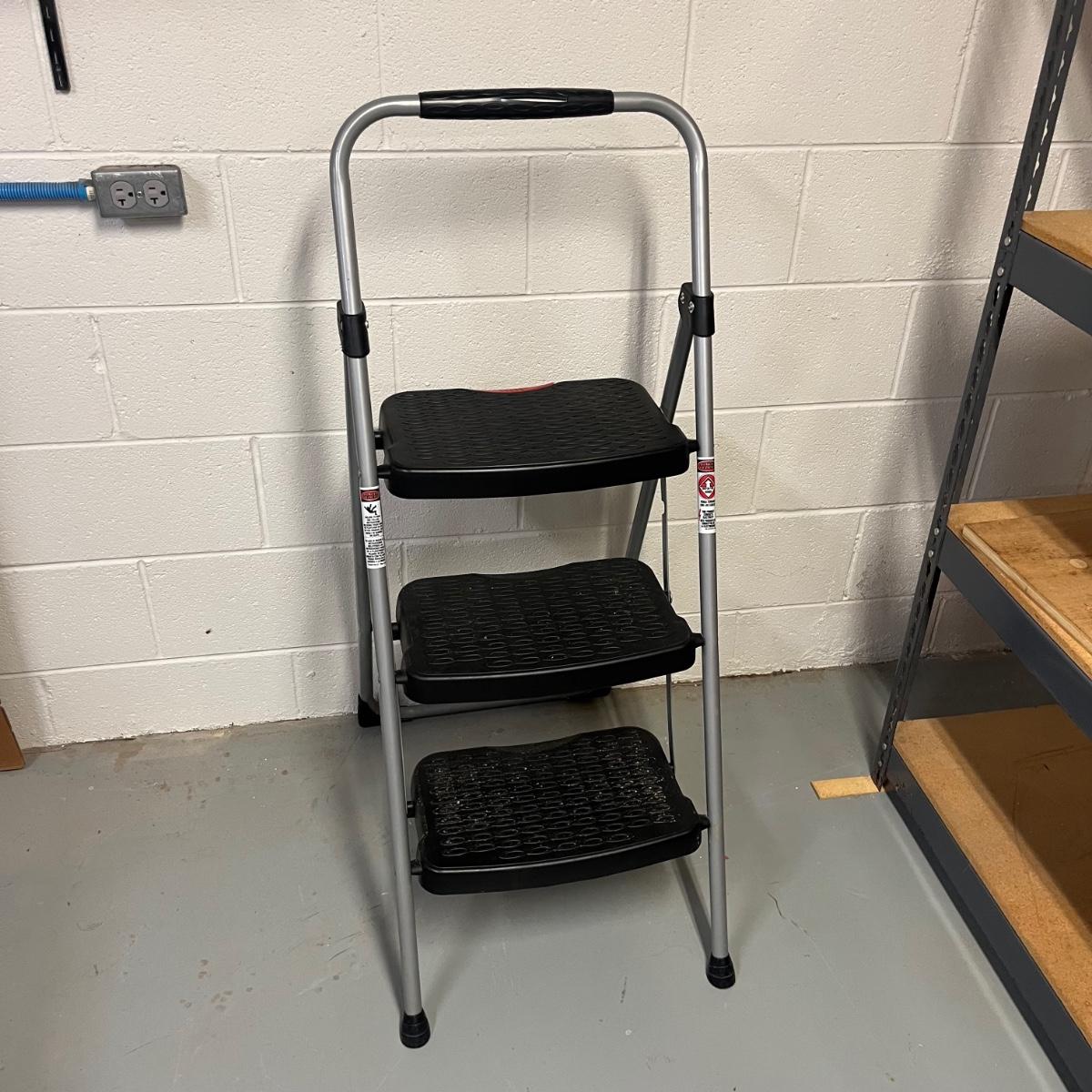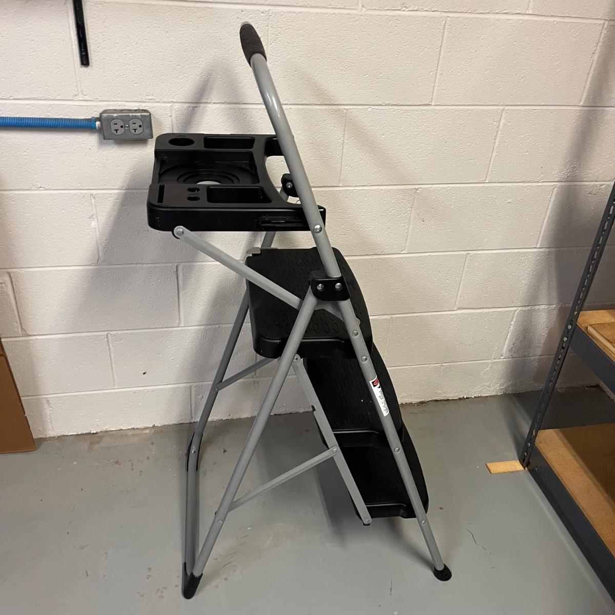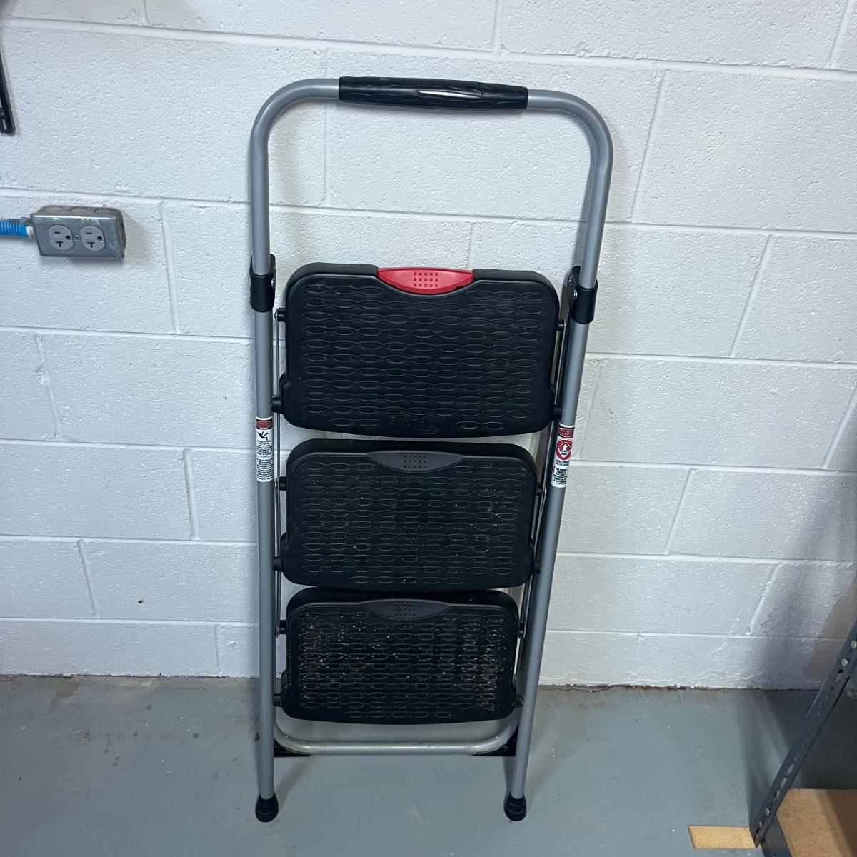 Lot includes two Step Right by Werner Aluminum and plastic step stools. Largest step stool measures 18” x 24” x 47”H.