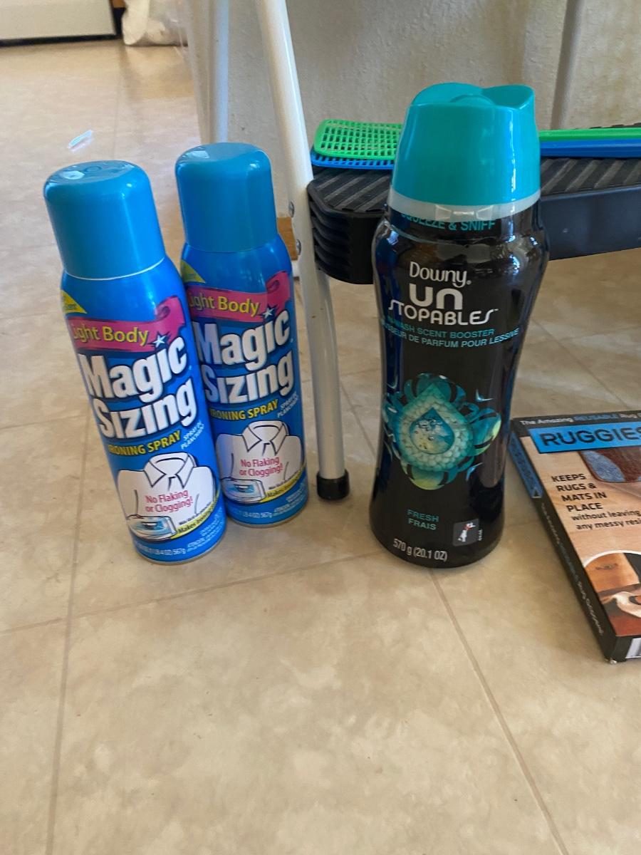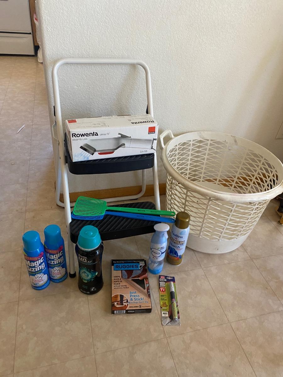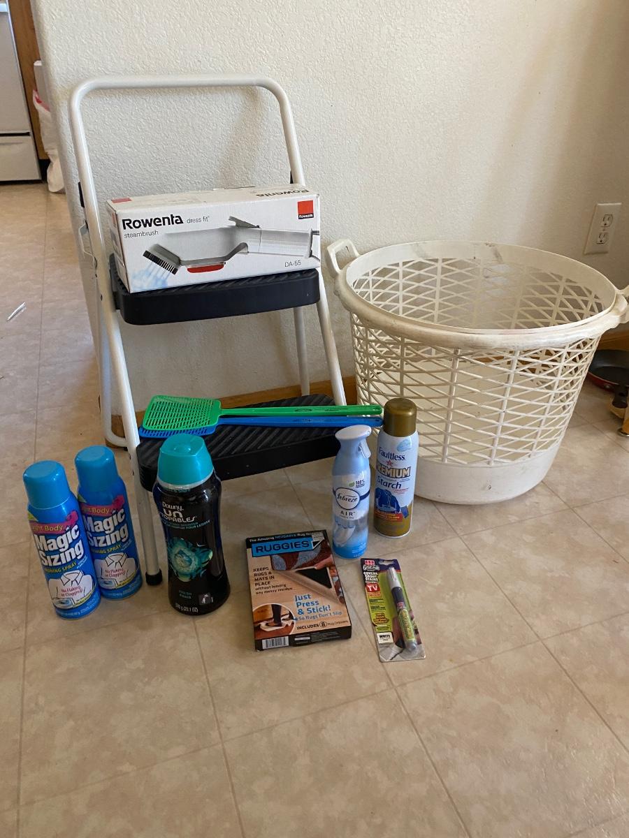 STEP STOOL, LAUNDRY BASKET, STARCH, STEAMER, DOWNY UNSTOPPABLES AND MORE