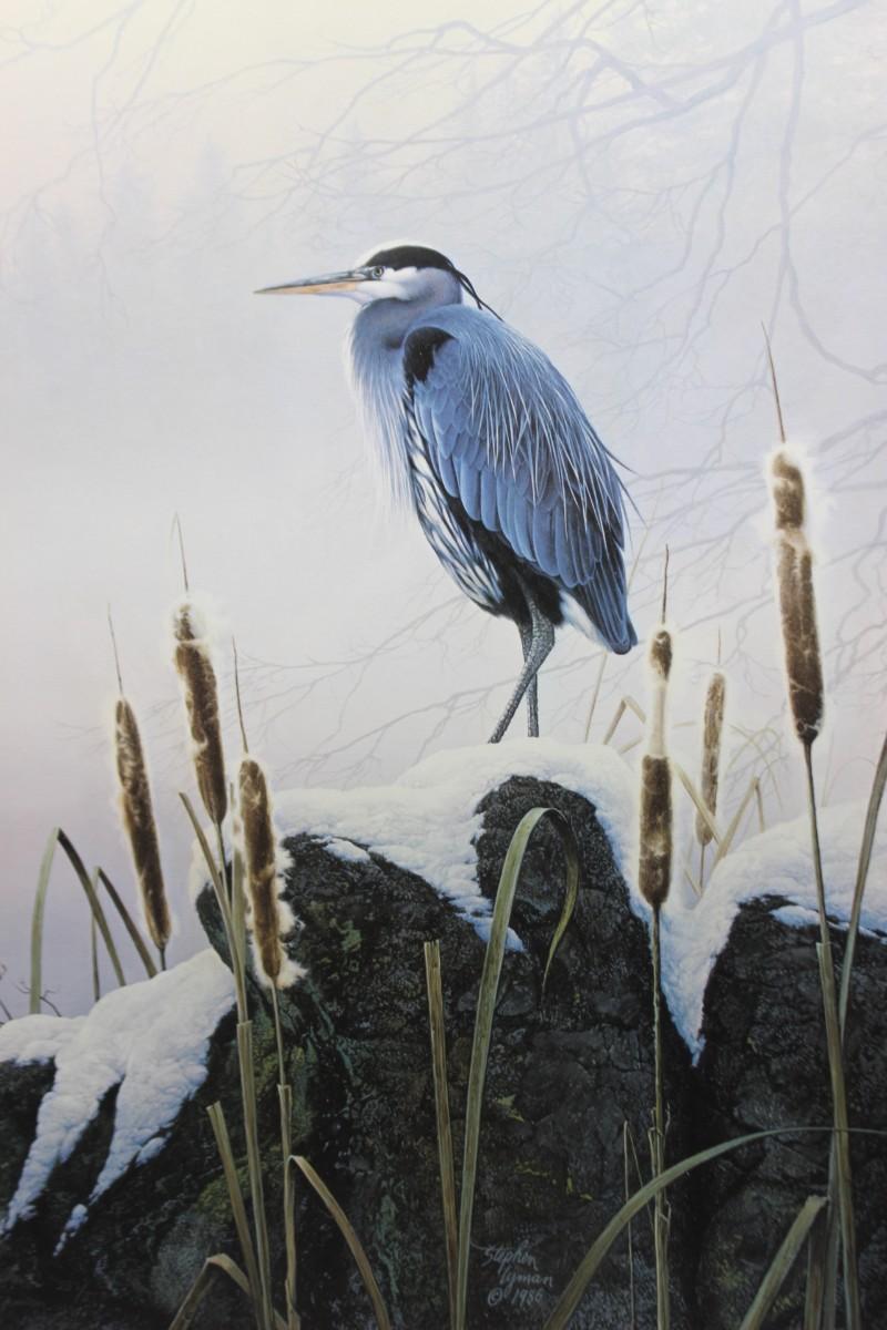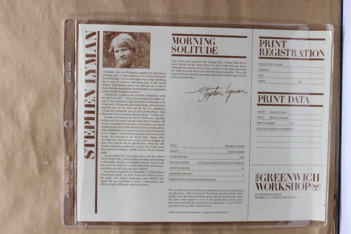 Stephen Lyman Morning Solitude Great Blue Heron Print on Paper Numbered & Signed