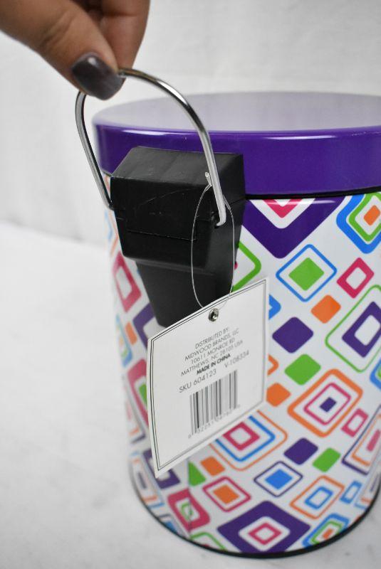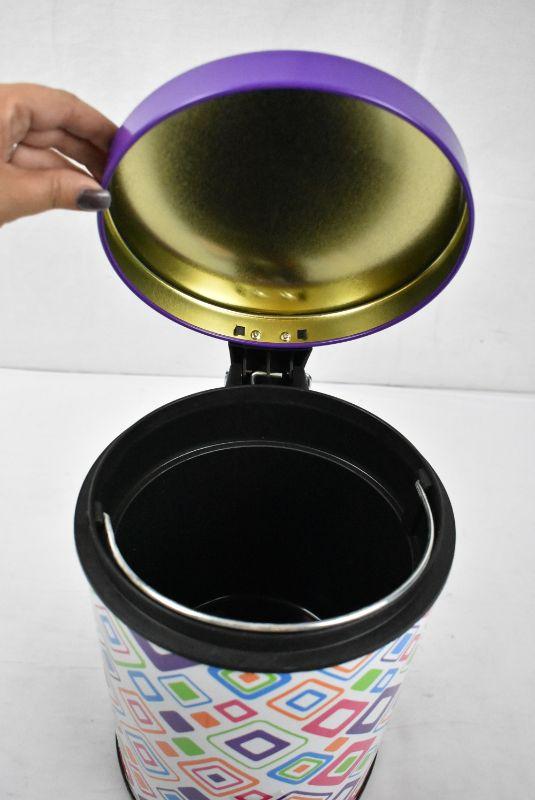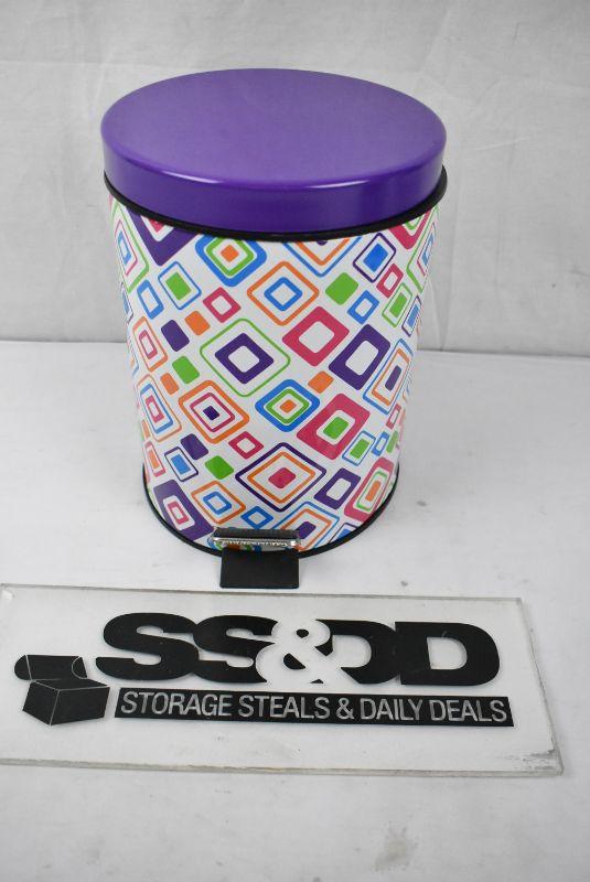 Step-Open Waste Can, Purple/White/Green/Blue/Orange/Pink Squares with removable inner liner - New