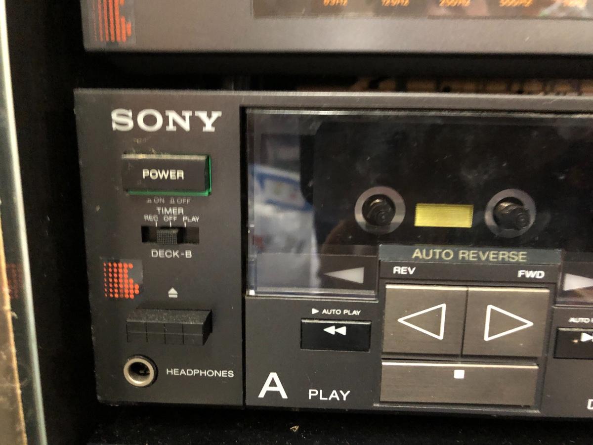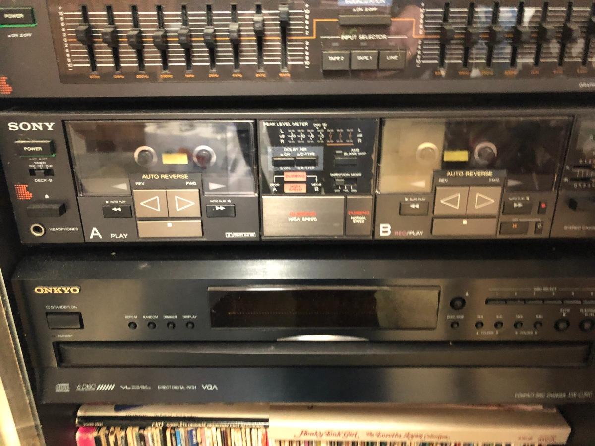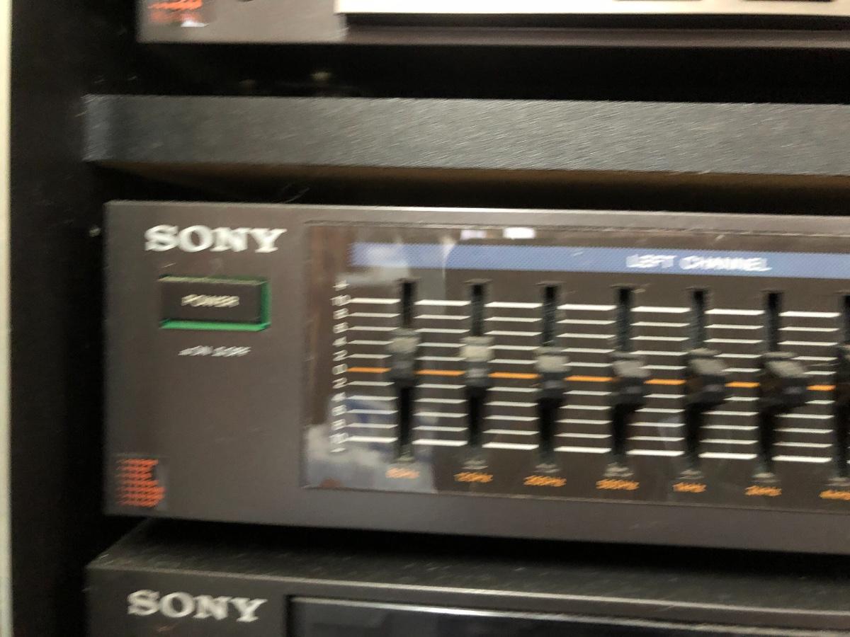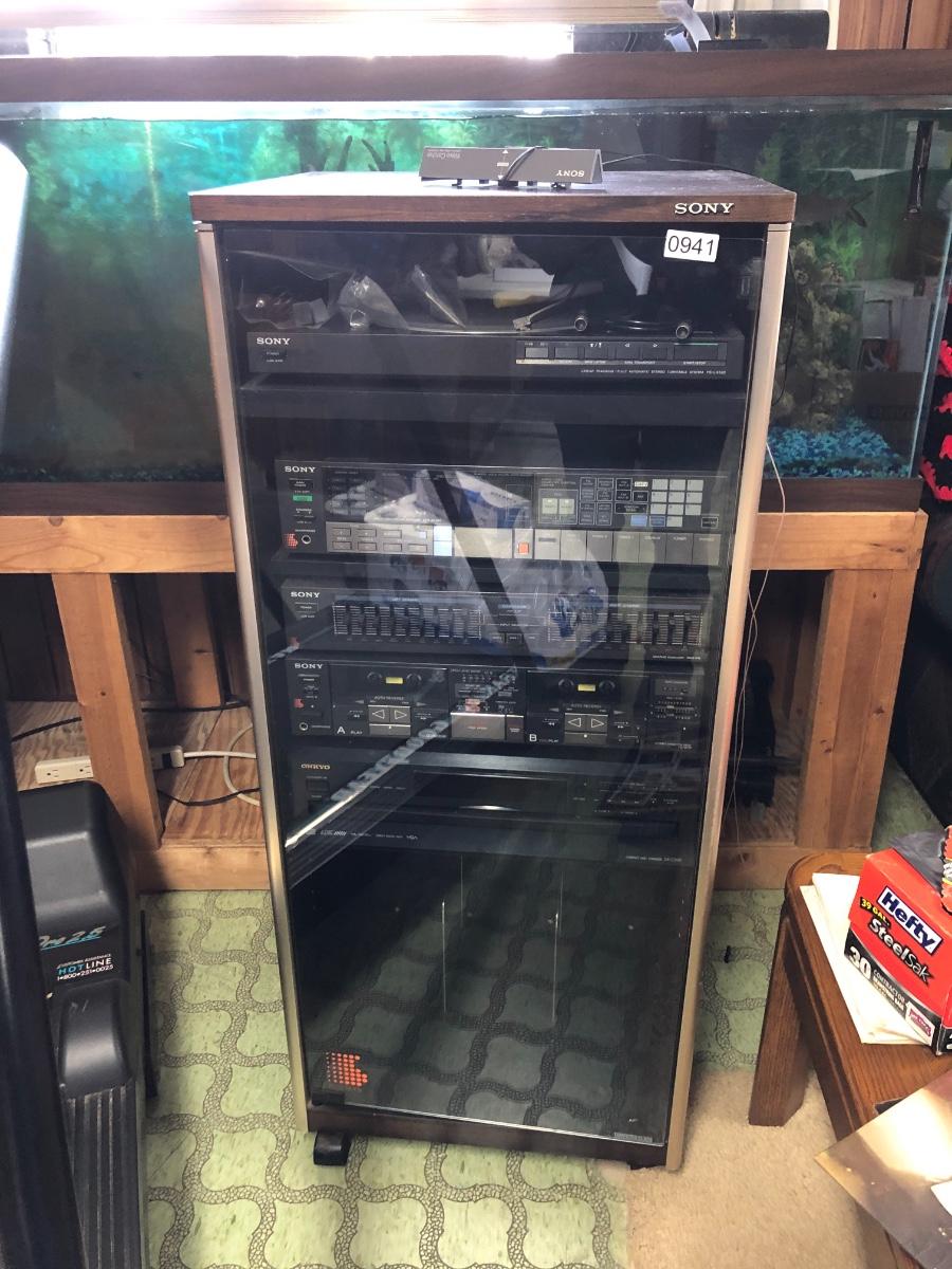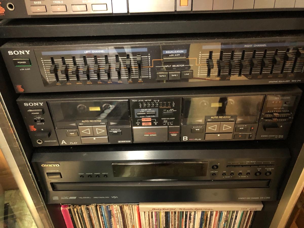 Sony Turntable, Sony Receiver STR-AV760, Sony Graphic Equalizer SEQ-210, Sony Stereo Cassette Deck TC-W7R, Onkyo 6 Compact Disc Changer DX-C390. Records are not included in this lot. Sold in separate lot.