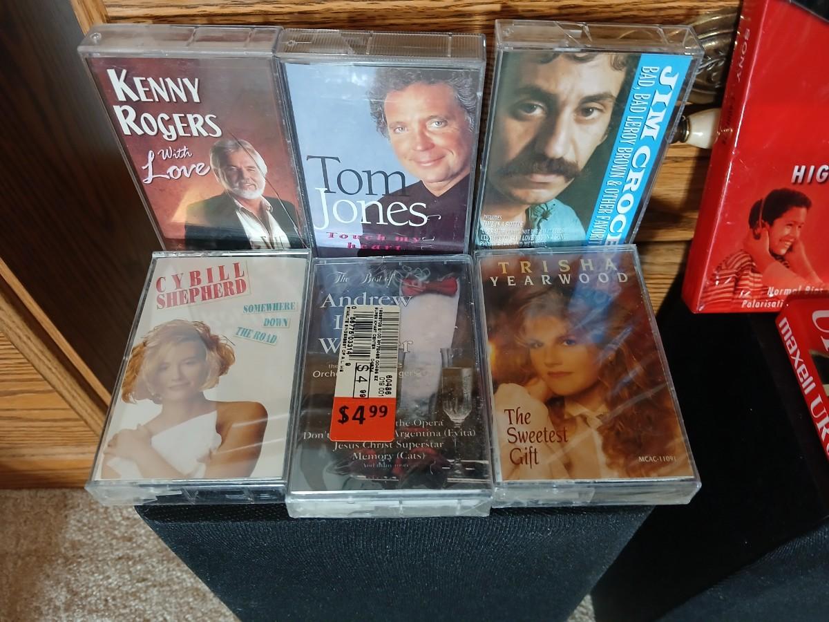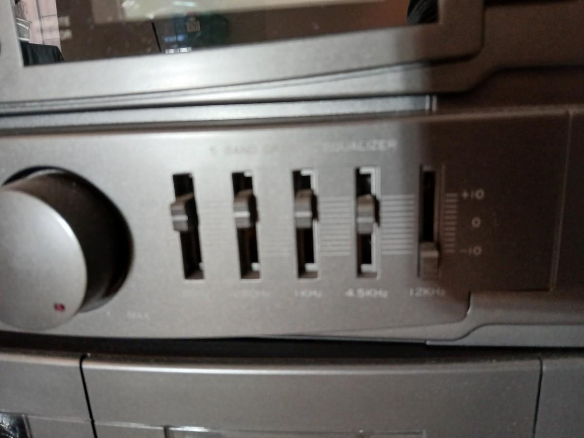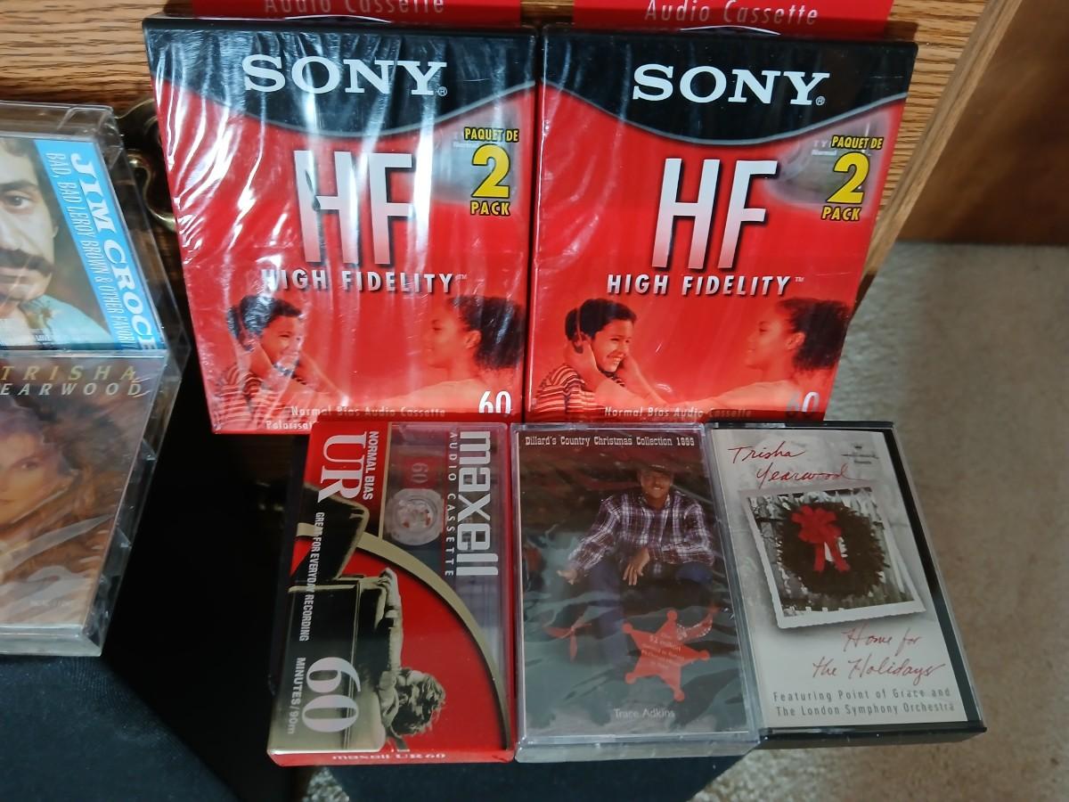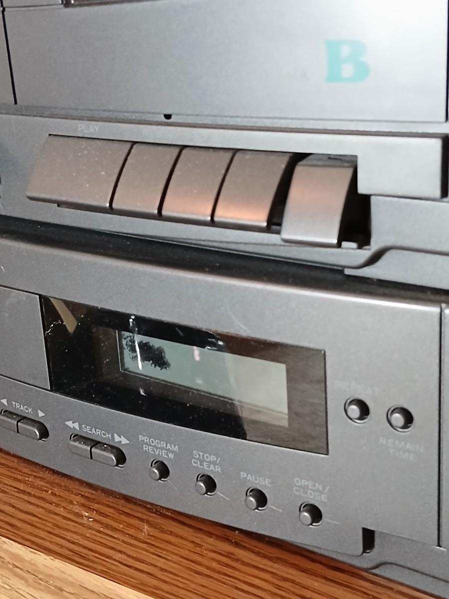 Stereo system CD player, Tuner, Dual cassette, Record player with 2 speakers and collection of cd's and cassettes Appears to have very little use