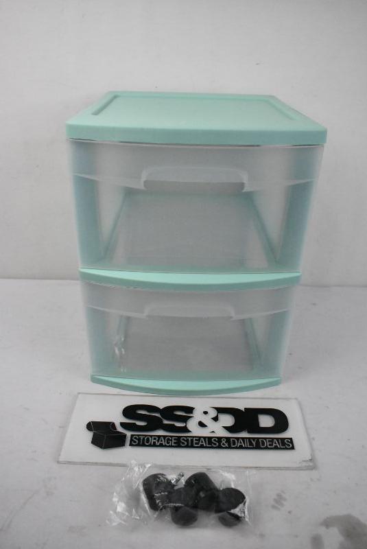 Sterilite 2 Drawer Cart, Mint, with Casters - New
