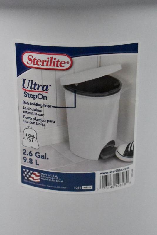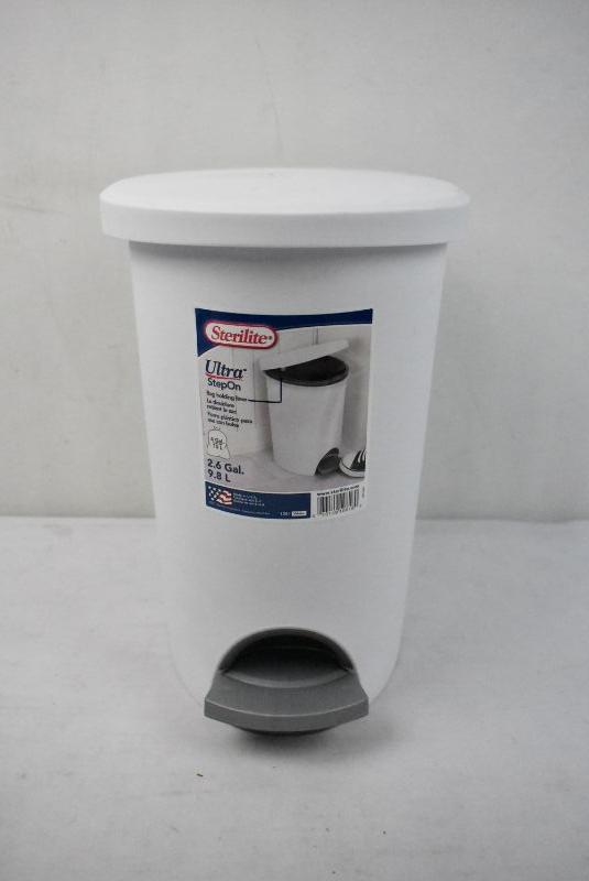 Sterilite, 2.6 Gal./9.8 L Ultra StepOn Wastebasket, White - New