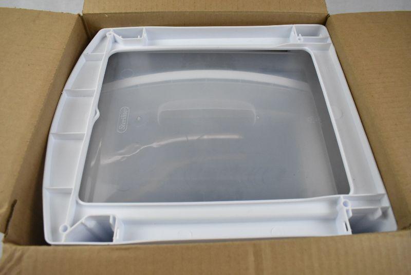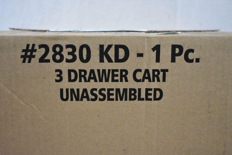 Sterilite 3 Drawer Cart White. Base is dented, makes bottom drawer stiff to slide in/out