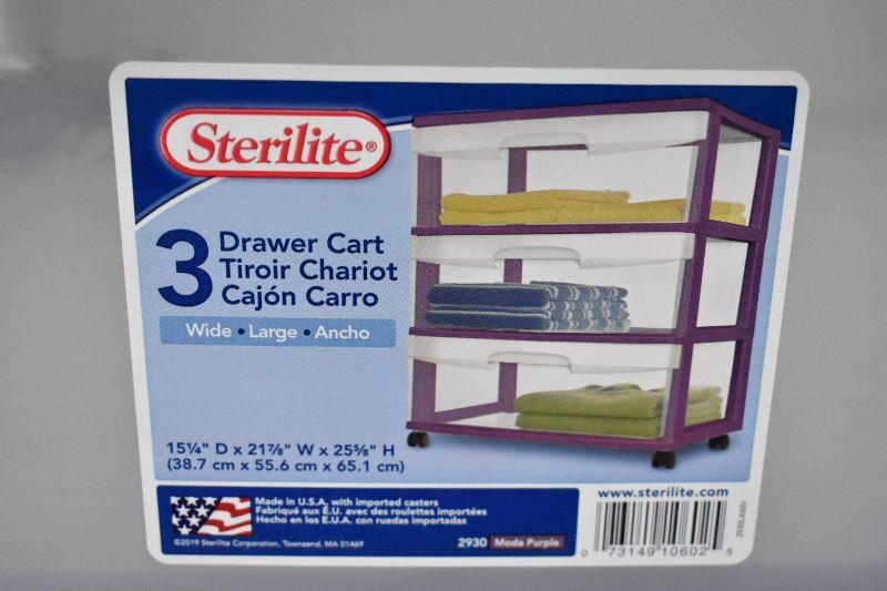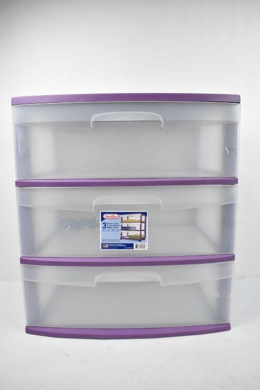 Sterilite 3 Drawer Cart with Casters, Purple & Clear - New