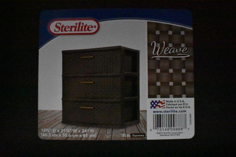 Sterilite 3 Drawer Espresso Weave Storage, 15" x 21" x 24" - New