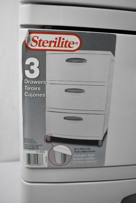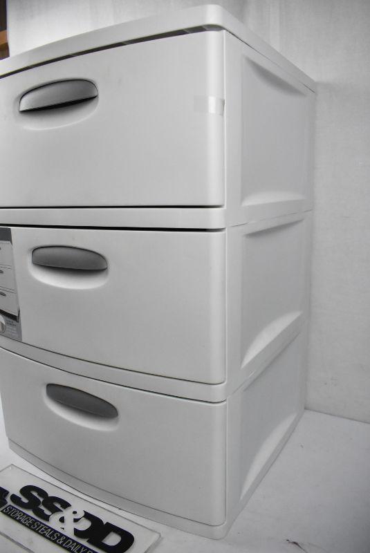 Sterilite 3 Drawer Tower. No Legs. White with Gray Handles