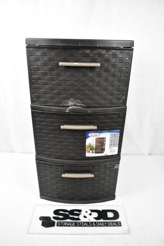 Sterilite 3 Drawer Weave Tower 15" x 13" x 24" Dark Brown "Espresso" - Bent/Stress Marks, still works