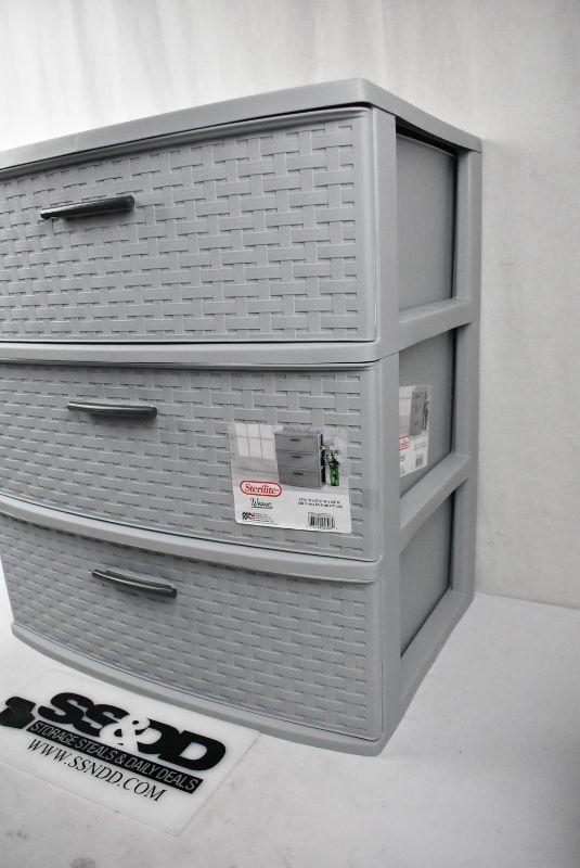 Sterilite 3 Drawer Wide Weave Tower Cement Gray - New
