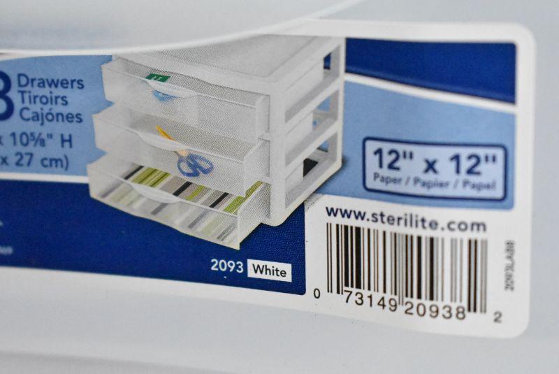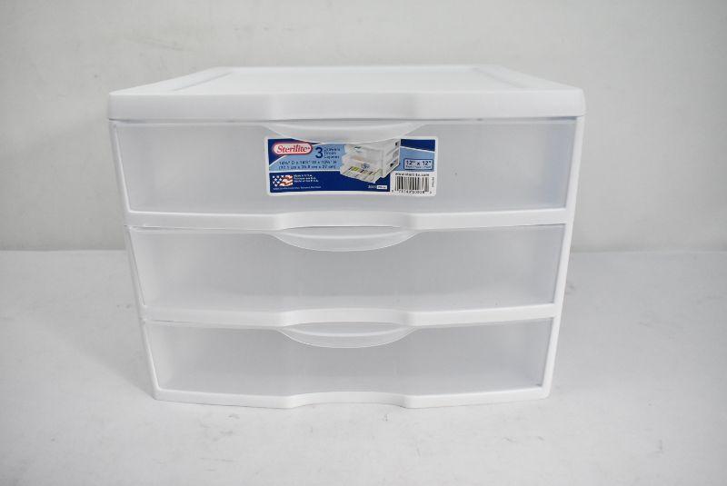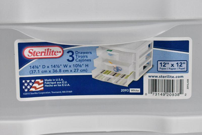 Sterilite 3 Drawers Desktop Organizer, Holds 12" x 12" Paper, Clear & White - New