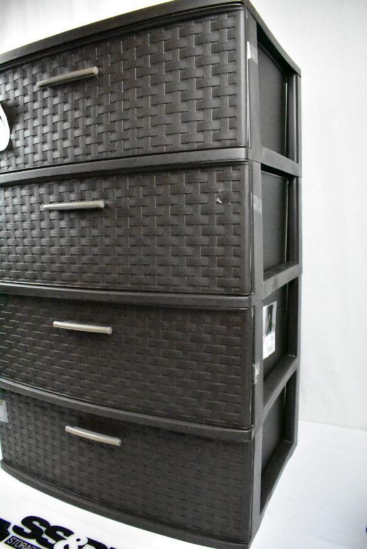 Sterilite 4 Drawer Wide Weave Tower Espresso. Near new condition. Scratch on top