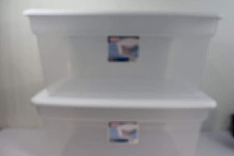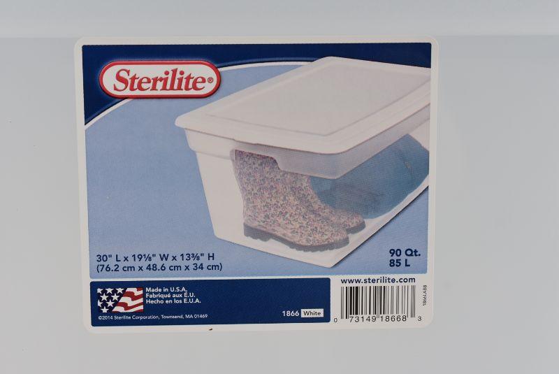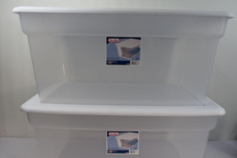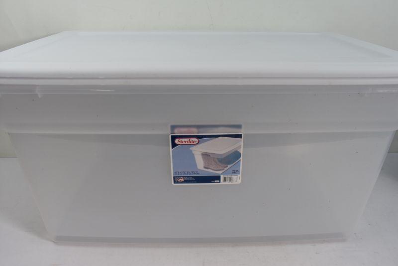 Sterilite, 90 Qt./85 L Storage Boxes, Clear w/ White Lids, Qty 2 - New