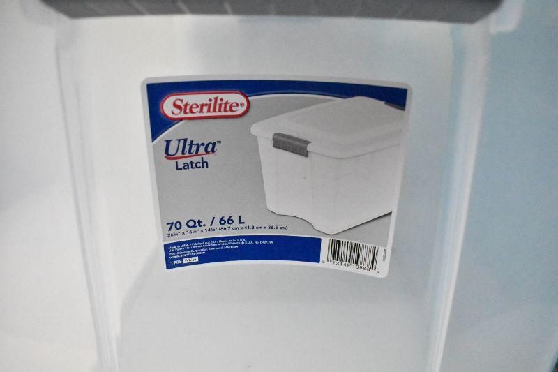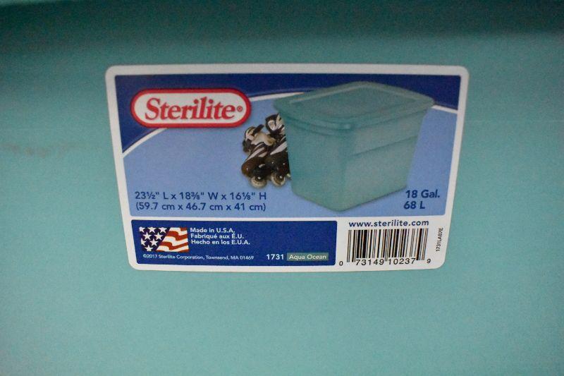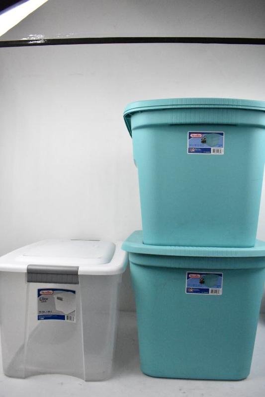 Sterilite Bins: 2 Teal 18 Gal, 1 Clear 70 Qt.