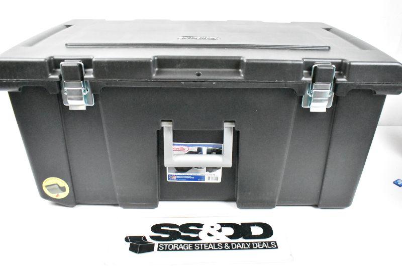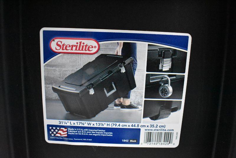 Sterilite Footlocker Black. 31x17x13, New but with some warehouse scratching