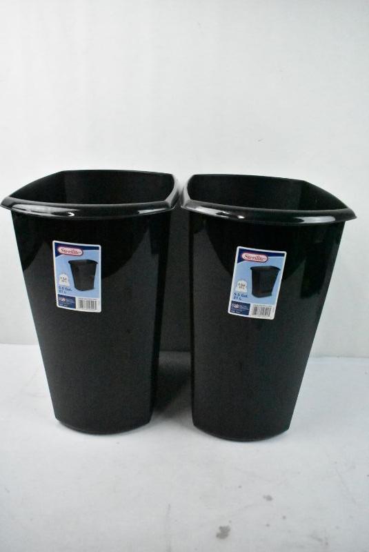 Sterilite Garbage Cans, Black, 8 Gallons Each, Quantity 2 - New